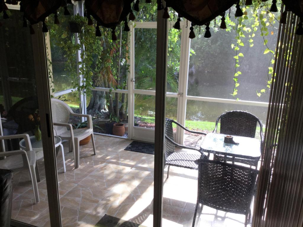 Gorgeous waterfront home in River Bridge! Features include enclosed and screened front entry,fully renovated eat in kitchen with Granite counters,dark wood cabinets and stainless appliances,screened Lanai overlooking tranquil river and total privacy,,spacious living room and dining area with raised ceilings, cozy den/3rd bedroom,master suite with full bath,twin walk in closets, glass block accent windows and Brazilian Cherry wood flooring, large one car garage off the laundry room,3 off street parking spots ,Clubhouse,Gym,Pool and much more!