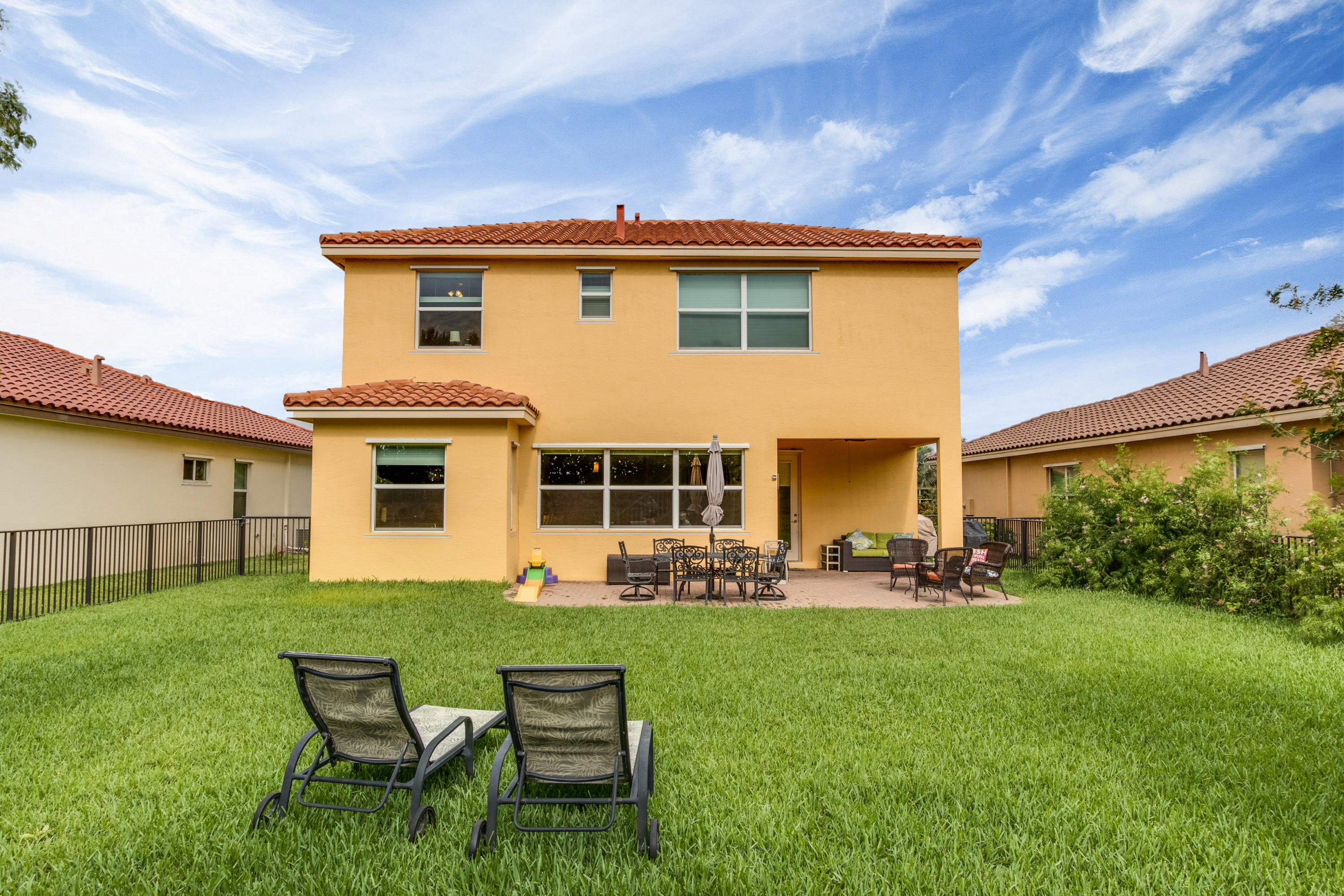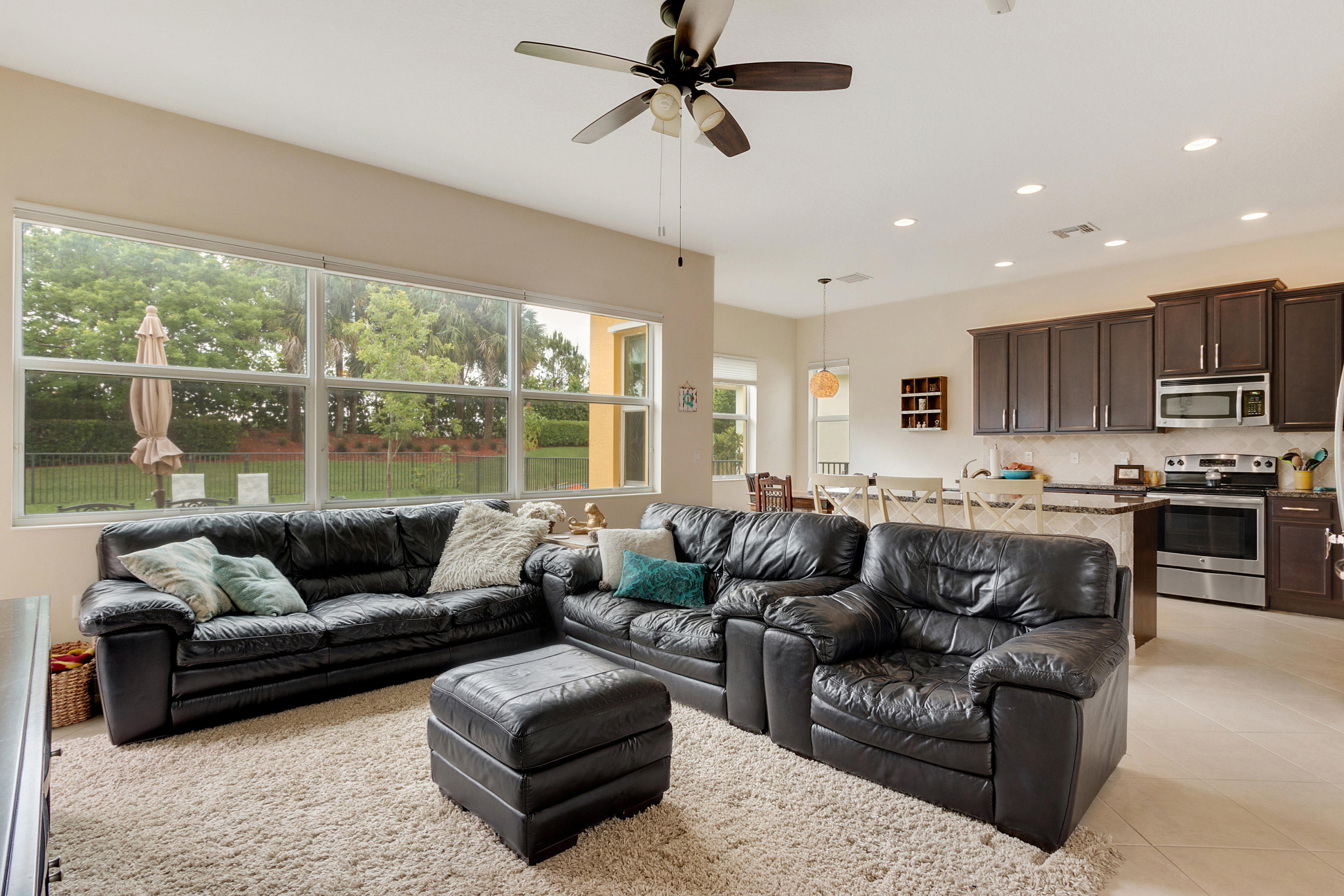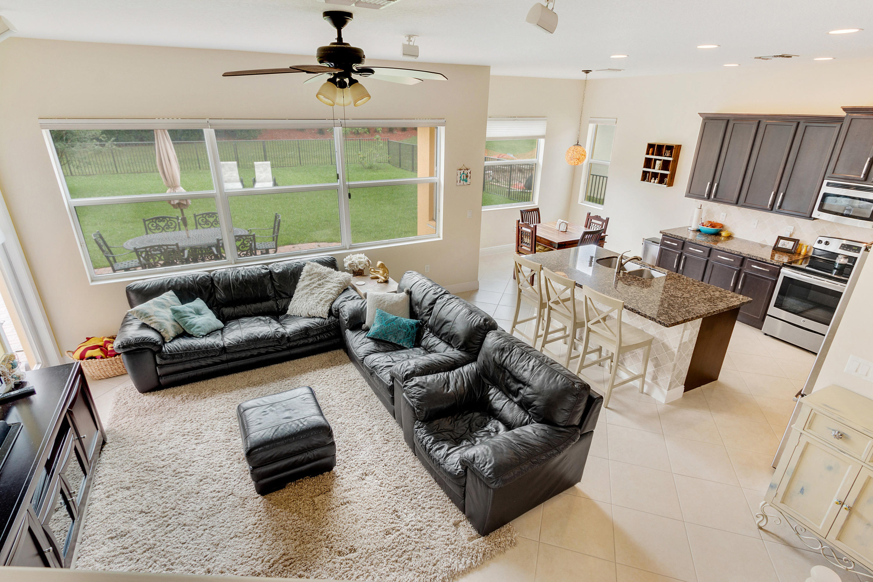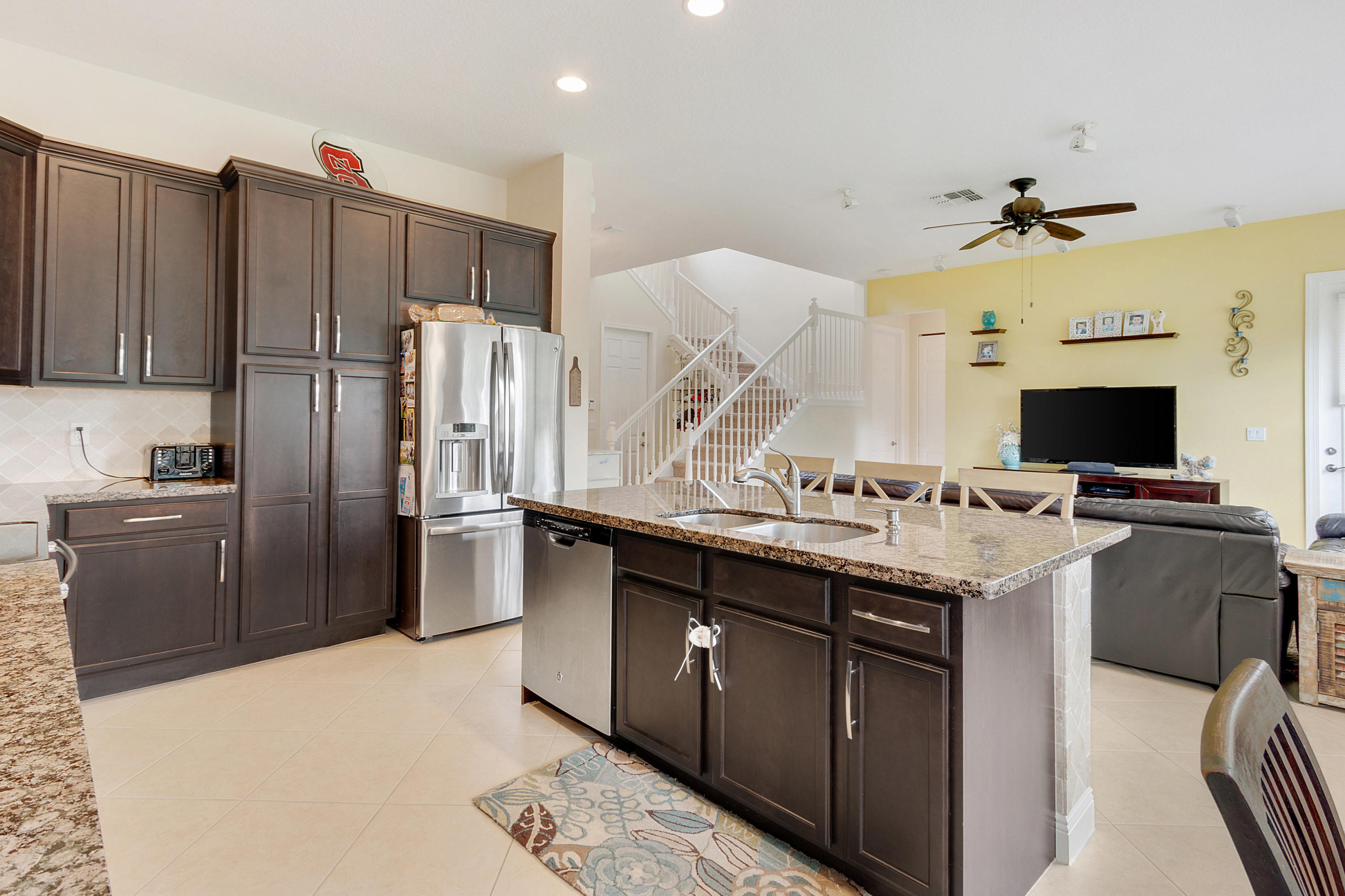This Stunning 4 Bedroom Home on a Huge Fenced Lot in Portosol sits on a quiet culdesac. There's Tile on the Diagonal in all Living Areas. The home boasts over $30,000 in Hunter Douglas Window Treatments including Pirouette Shades, Blackout Shades & more with many on Remote Controls. The Gorgeous Kitchen has 42'' Wood Cabinets with Crown Molding & Stainless Steel Appliances including a French Door Refrigerator as well as Granite Counters. The Great Room includes a 5 Point Surround Sound Speaker system. There's a Full Bedroom on the 1st Floor with Wood Look Flooring. A Cabana Bath leads to the Massive Fenced Yard with plenty of Room for a Pool & More! Upstairs is Lush Carpet & Padding leading to the Master Bedroom with a Huge Walk-In Closet & Upgraded Bath. Awesome Gated Clubhouse Community.