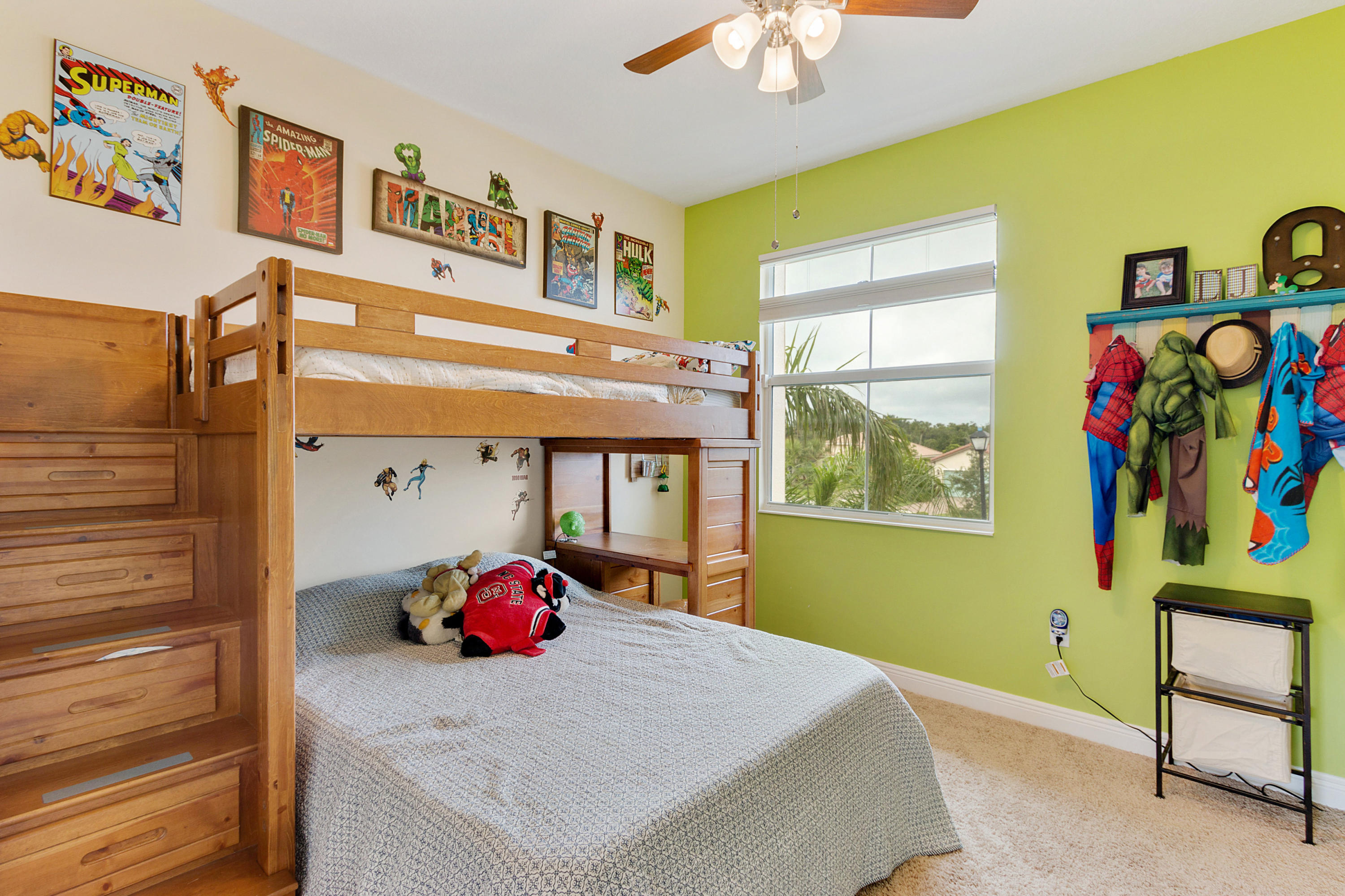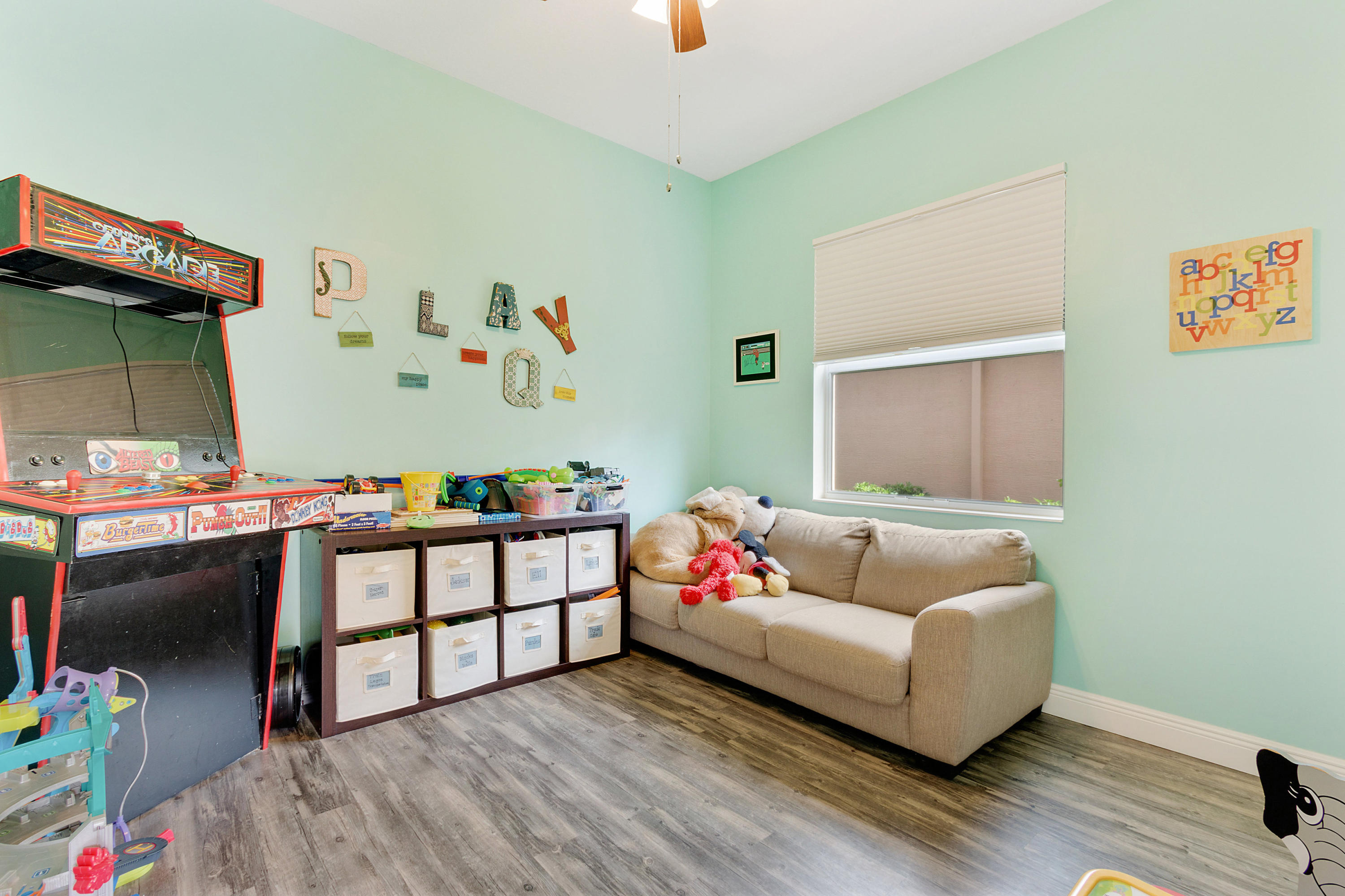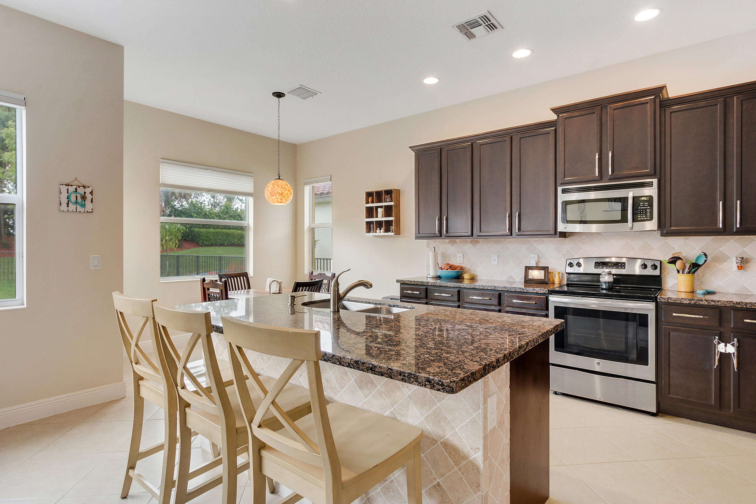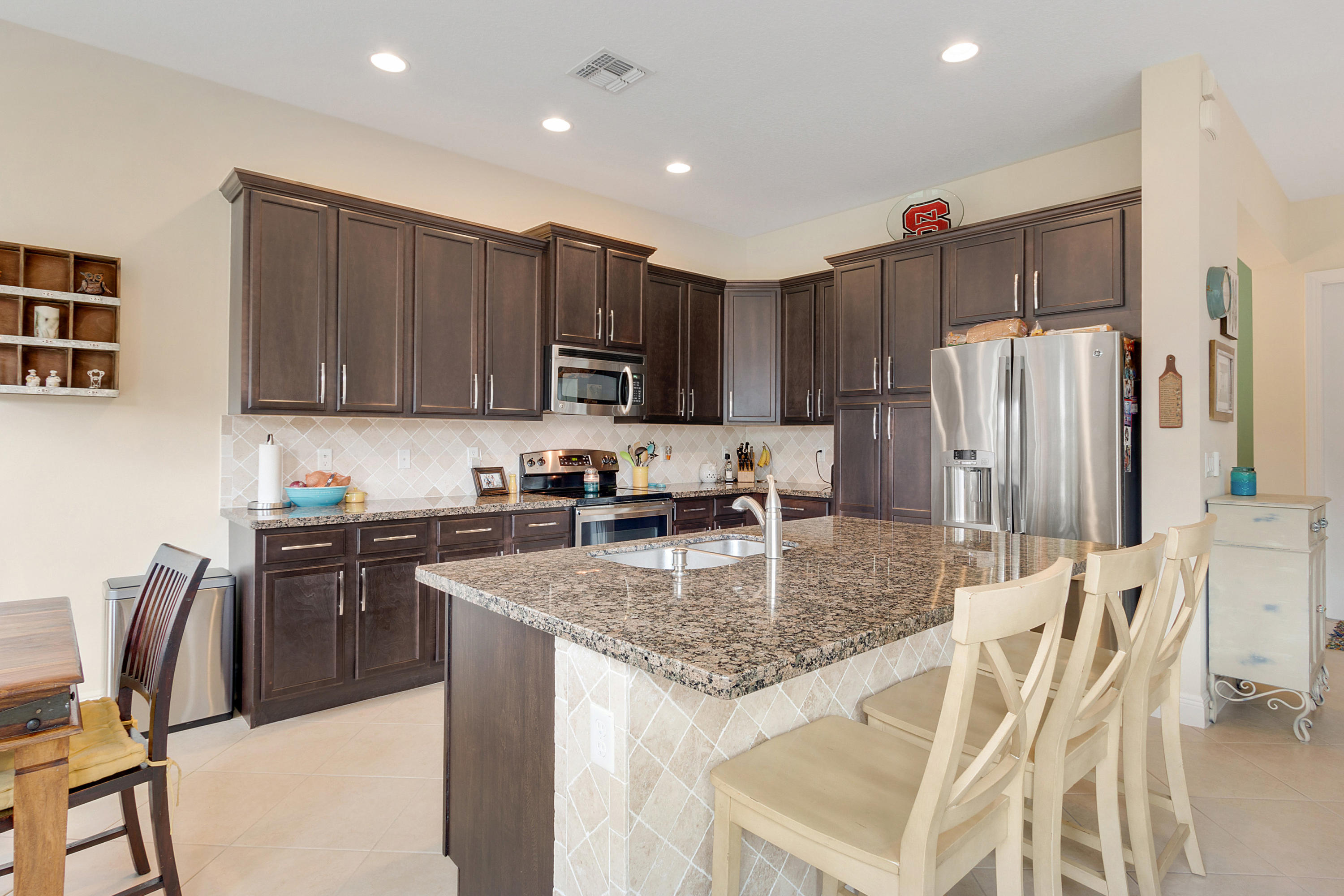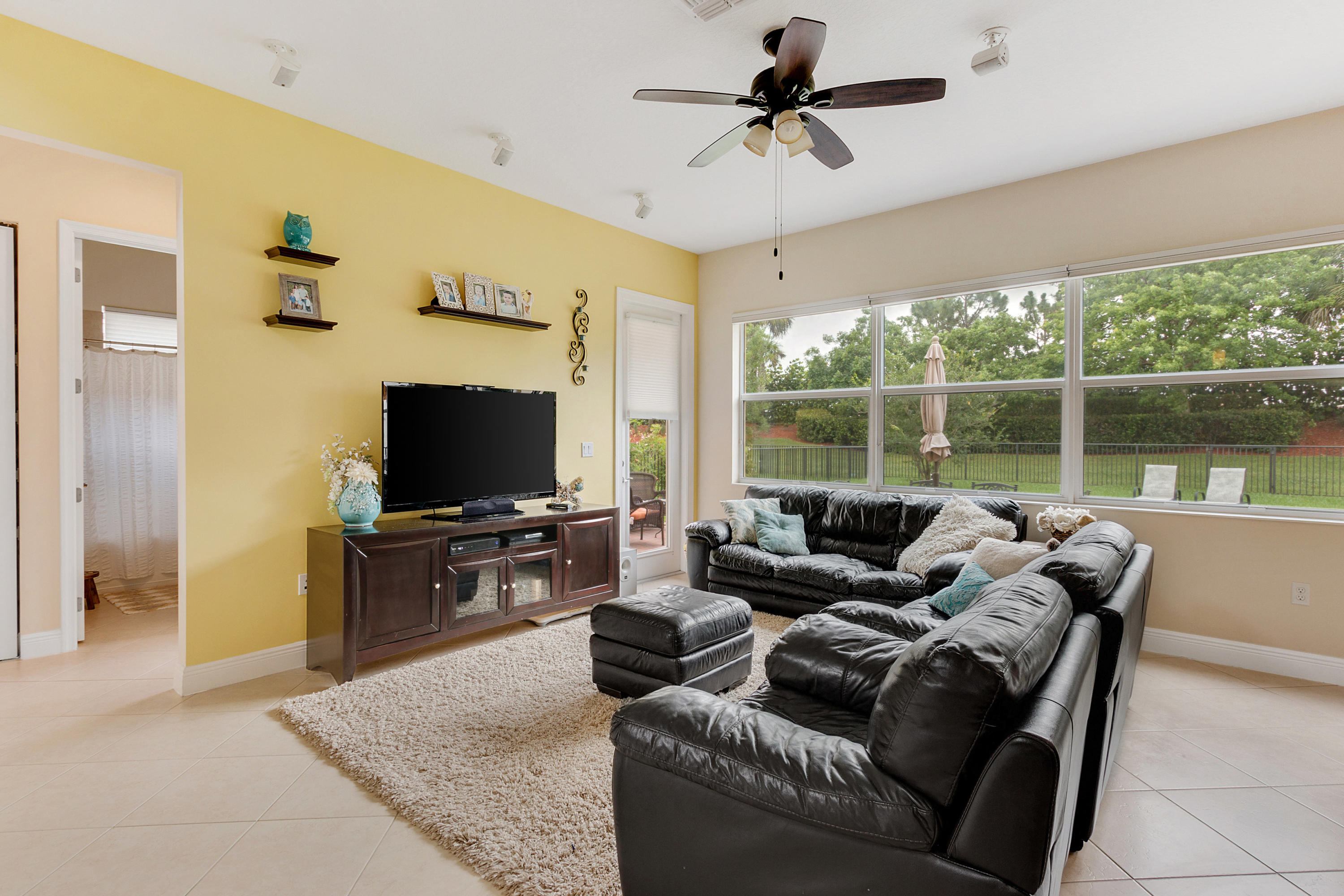 This Stunning 4 Bedroom Home on a Huge Fenced Lot in Portosol sits on a quiet culdesac. There's Tile on the Diagonal in all Living Areas. The home boasts over $30,000 in Hunter Douglas Window Treatments including Pirouette Shades, Blackout Shades & more with many on Remote Controls. The Gorgeous Kitchen has 42'' Wood Cabinets with Crown Molding & Stainless Steel Appliances including a French Door Refrigerator as well as Granite Counters. The Great Room includes a 5 Point Surround Sound Speaker system. There's a Full Bedroom on the 1st Floor with Wood Look Flooring. A Cabana Bath leads to the Massive Fenced Yard with plenty of Room for a Pool & More! Upstairs is Lush Carpet & Padding leading to the Master Bedroom with a Huge Walk-In Closet & Upgraded Bath. Awesome Gated Clubhouse Community.