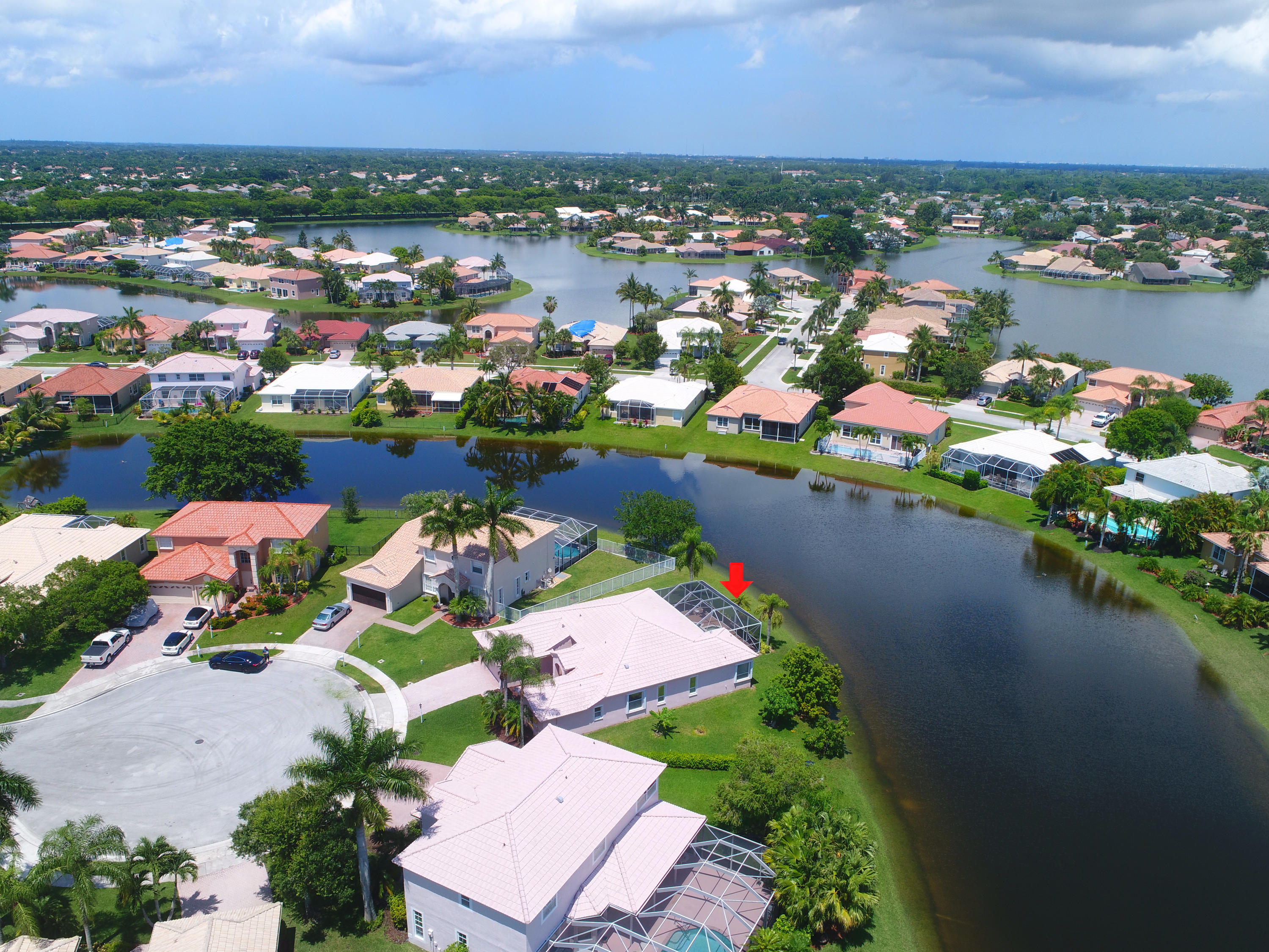 Amazing cul-de-sac location: Huge pie-shaped lot (just about 12,000 square feet) right on the water,featuring a screened-in pool w/raised spa with waterfall & a magnificent southern exposure. This homehas it all! This spacious home features 3 Bedroom 2.5 Bath, cathedral ceilings, and 20" porcelain tile seton the diagonal throughout entire home. Kitchen is completely updated w/ beautiful and unique Brazilian granite, 32-inch stainless steel undermount sink & new appliances including Bosch dishwasher & designer range hood. The custom designed cabinets haveextra deep drawers for dishes and pots & pans, and a pantry wall with roll-out shelves. The huge contrasting island has deep storage drawers and electrical outlets for appliances. Large bedrooms!! Click more!
