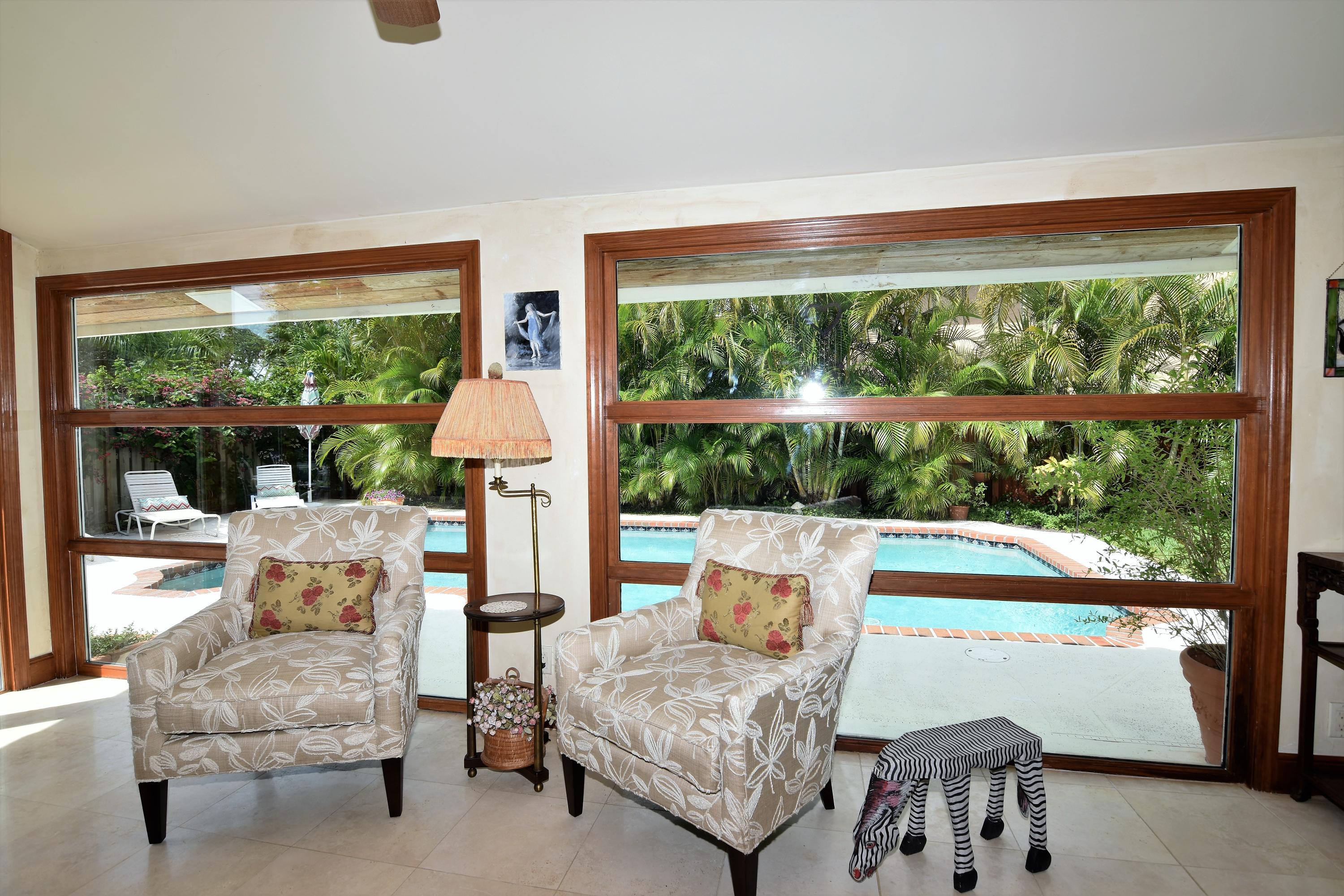 Do not miss this gorgeous, unique property in Timbercreek. From the moment you pull up to this fine home and walk in, you will know that this home is special. The great room has vaulted cedar wood ceilings and custom built in wall unit along with a wet bar and wine refrigerator. There is Saturnia floors in all living areas and wood flooring in all bedrooms. It does have a split bedroom floor plan. The kitchen has been totally updated with custom wood cabinetry, granite counters and under mount sink. Both Master bath and Guest baths have been renovated. The real charm of this home is the outdoor living areas. The landscaping, with all it's flowers and bushes and butterfly garden is just incredible. Relaxing in the yard, patio and pool area is like being at a private resort.