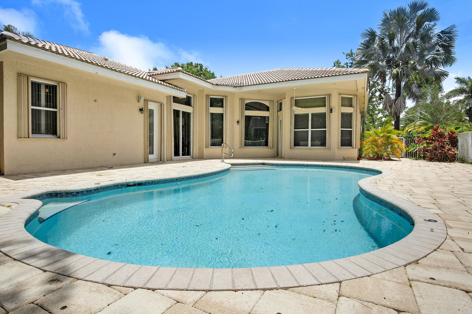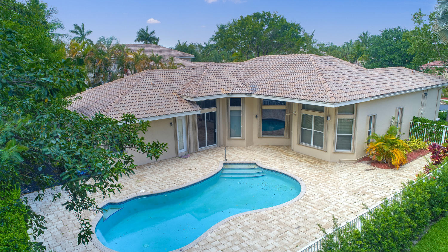 This is a WOW house on a peaceful lot w/no rear neighbors. True 5 bedrooms with a split plan for extra privacy. Marble floors in all living areas - Wood floors in the bedrooms. Dream kitchen w/wood cabinets, granite counters & backsplash opens up to the family room & cozy breakfast nook. Master Suite has elegant double French door entry, 2 walk-in closets, marble shower, soaking tub and separate vanities. Formal Dining Room is spacious enough for holiday and family dinners. Accordion shutters. THREE car garage w/pavered driveway. Pavered patio surrounds the pool that is perfect for relaxing on those sunny Florida days. HOA includes Manned security gate, play area, & cable. Convenient location with great schools, parks and shopping just moments from your door!