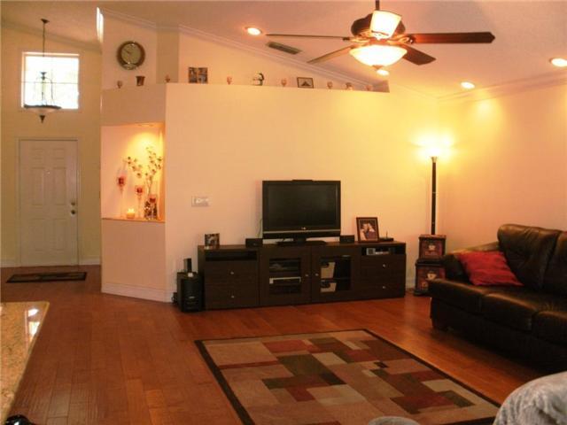 A show stopper with real appeal!Meticulous 3 bdm home w/gorgeous designer kitchen,42 inch light wood cabinets,gorgeous granite countertops w/tumble marble backsplash.Fabulous kitchen faucet fixture!Most of the home has wood floors, except the master and s econdary bedroom.Three sets of newer French doors w/built-in blinds lead out to the patio.You will love the almost new master bath,very chic & beautiful.Solar heated(panels)scrnd pool w/patio area.*huge yard*Accordian Shutters*crown molding*fully fenced*