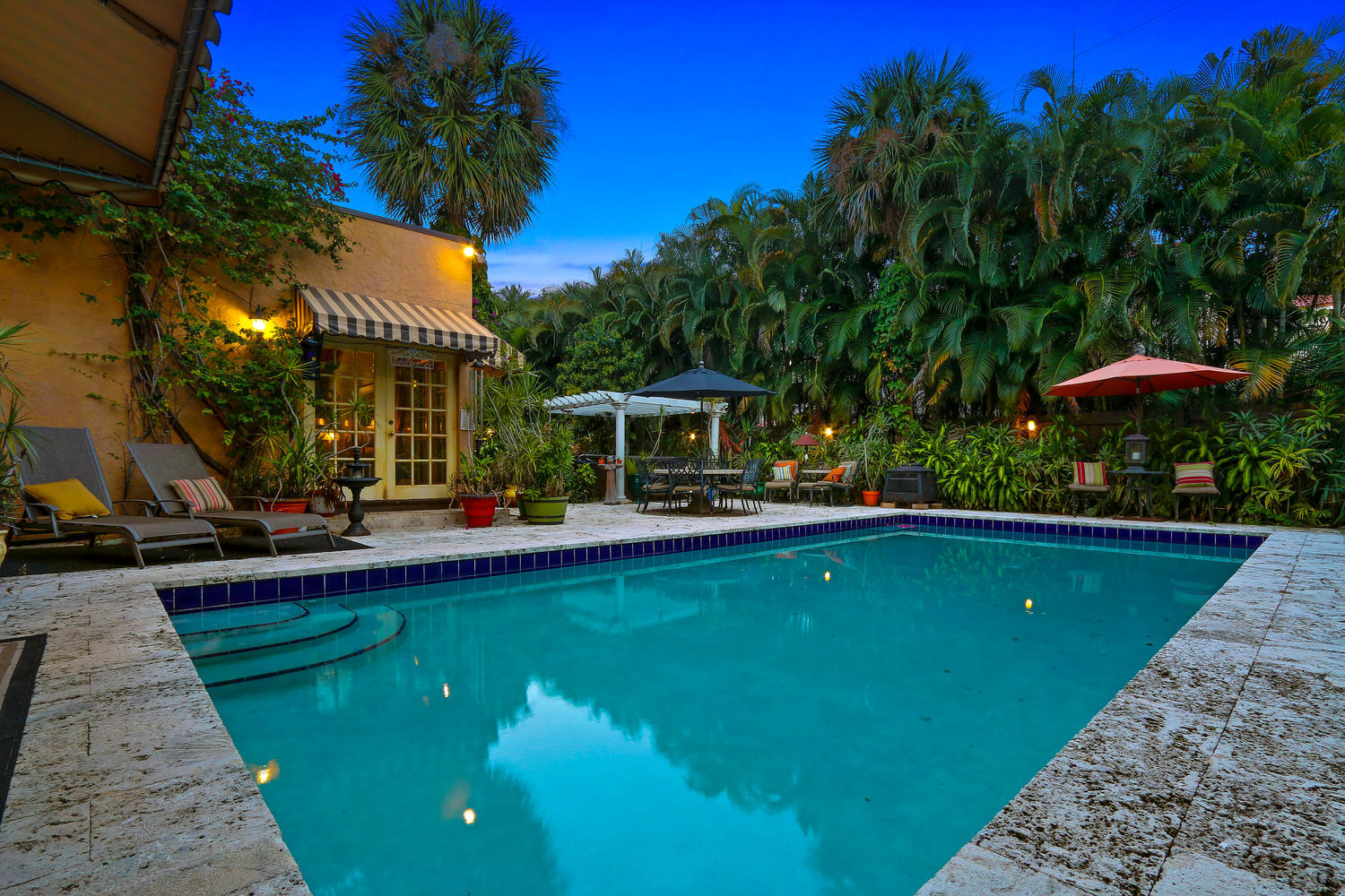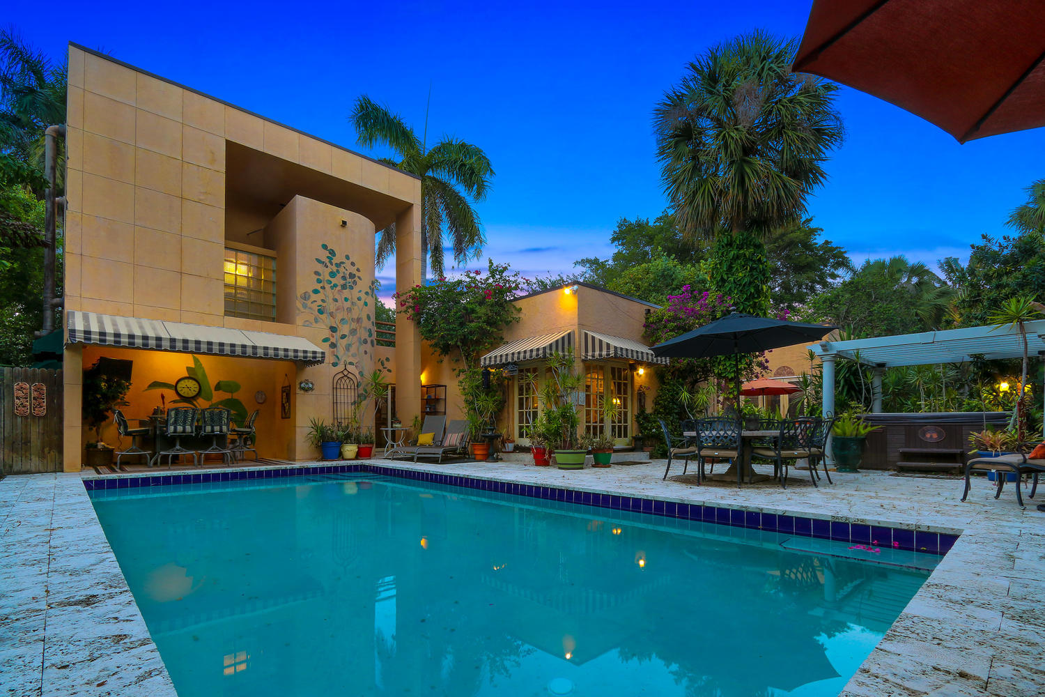 Truly unique and rarely available, this original Addison Mizner home is a splendid mix of Old World charm and contemporary design. Nestled in Boca Raton's highly sought after historic neighborhood of Old Floresta, this historically designated 4 bedroom, 2.1 bathroom home features impact windows, newer roof, and newer A/C units. Stunning architectural details include Pecky Cypress ceilings, wrought iron fencing, handmade tiles, hard wood floors, 10' and 14' ceilings throughout and wood burning fireplace. A tropical oasis surrounds the oversized pool & authentic cut coral patio area providing complete privacy and an ideal setting for entertaining. *The charm and value of this home makes it an absolute stand-out. You must see it!*