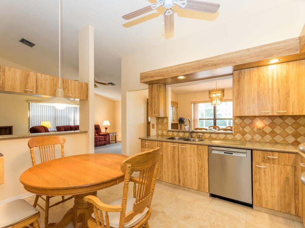 Immaculate original owner Montelana Model. 3 big bedrooms, 2 bathrooms. Open floor plan, walk through front doors and overlooking beautiful lake and screened in pool with aprox 1500 sq. ft. euro-tile pool/patio! Kitchen features quartz countertops and stainless appliances including a convection oven and a Bosch dishwasher. Barrel tile roof, Gutters, accordion hurricane shutters, Concrete driveway ,freshly painted inside and out! "A" Schools!