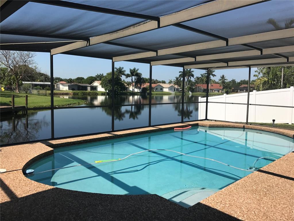 Home in mint condition. 3/2 with 2 Car Garage, pool and lake. Tile flooring in living area, laminated wood flooring in the bedrooms. Tastefully upgraded kitchen, big family room adjacent to kitchen. Sunken living room. Beautiful lake and pool view from dining room and kitchen. Separate laundry room by garage. Big patio area by pool area for entertaining. Don't miss it.
