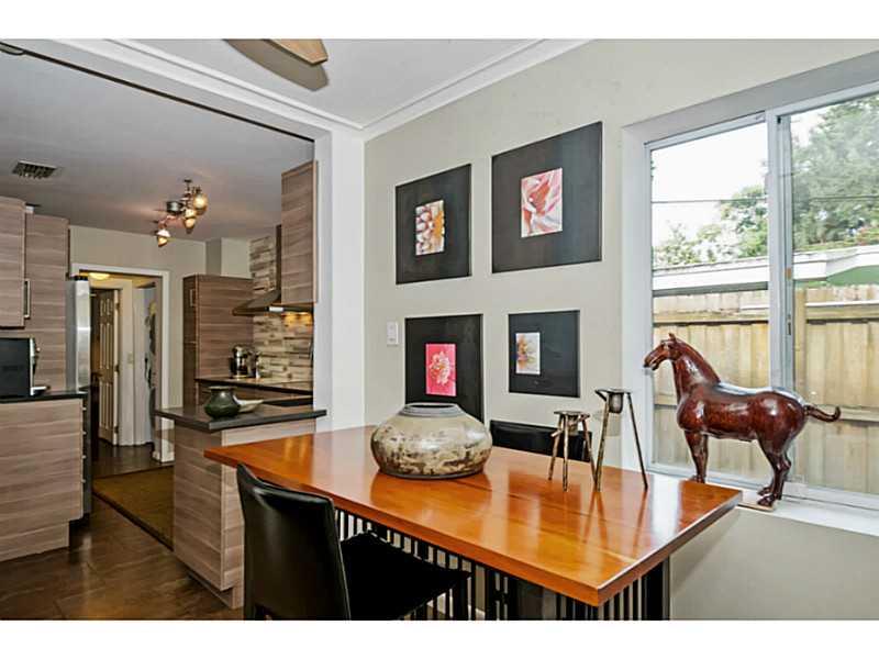 Mid-century Florida ranch style home completely refurbished Lake Ridge neighborhood, East Ft Lauderdale. Bike to beach, Wilton Manors, Downtown. Wide open space, home offers new fully equipped kitchen with contemporary urban style, dining area, formal din ing, living room, large master bedroom, large closets, large master bath lined with travertine tiles, frameless shower. Bright & airy, French doors lead to tropical landscaped yard, patio & pool, sunbathing area. Walk to shopping, eateries, entertainment.