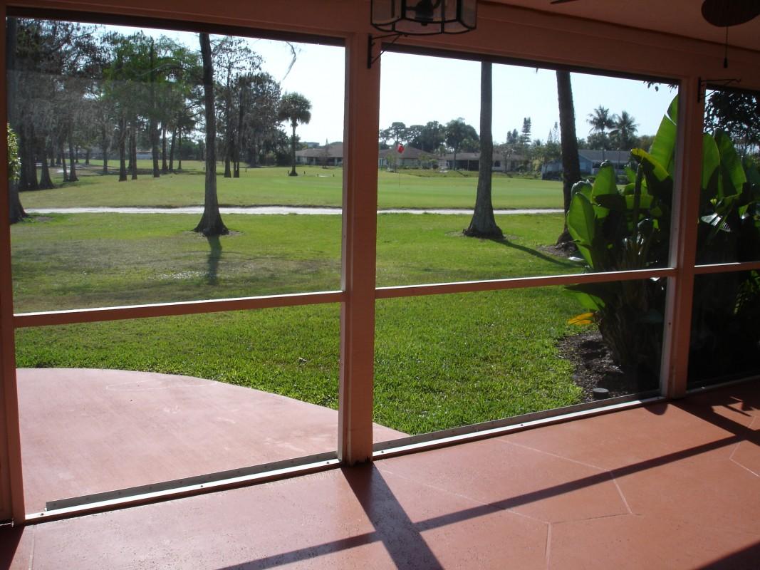 On golf course, great view! 9 ceiling fans & 9 closets. Large screened patio and bar area (450 sq ft). Mexican tile throughout. Newly carpeted bedrooms. 400 sq ft fenced dog run. Alarm system. Non Homesteaded taxes - $3625. Immaculate condition, move in ready.