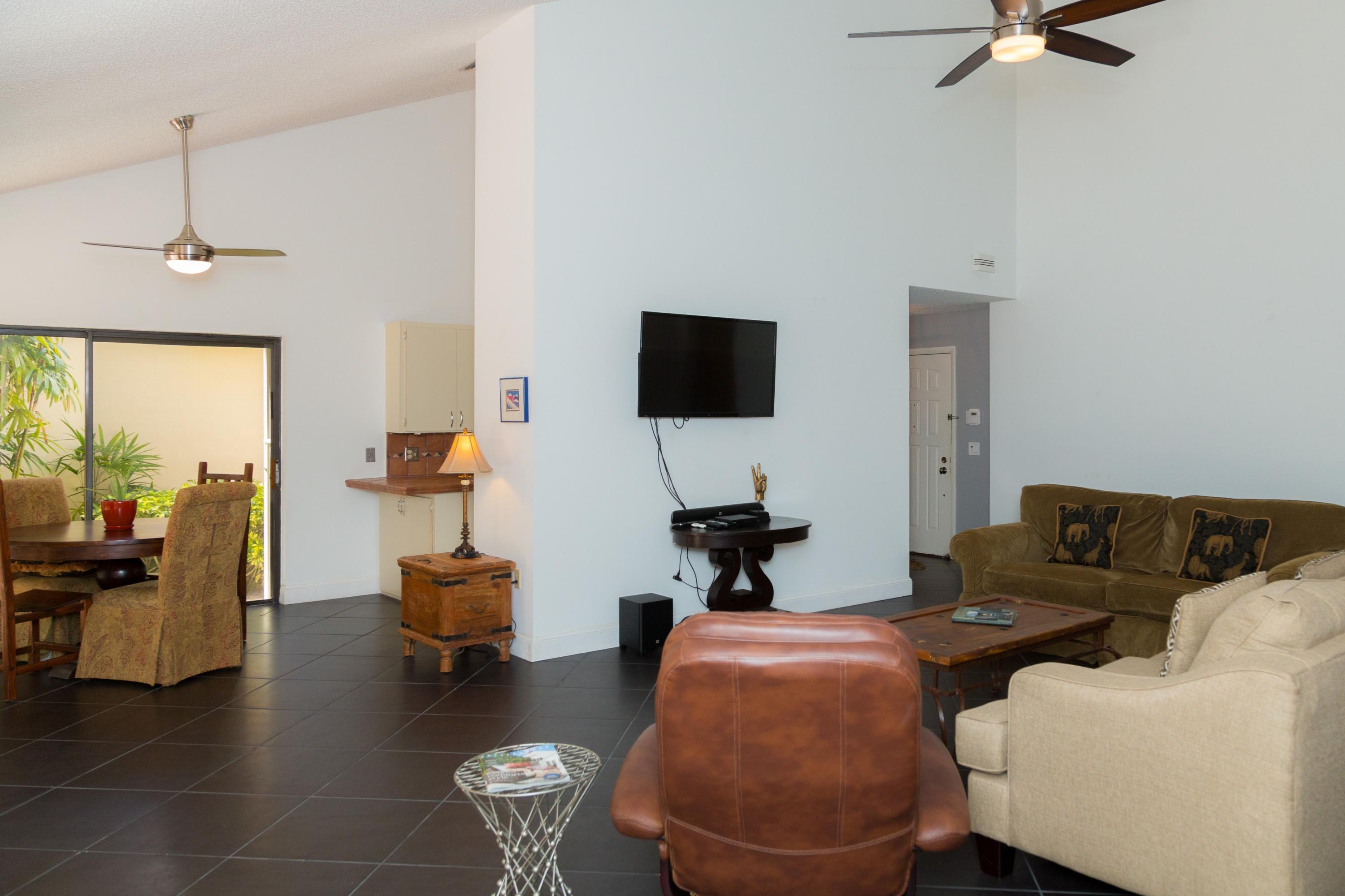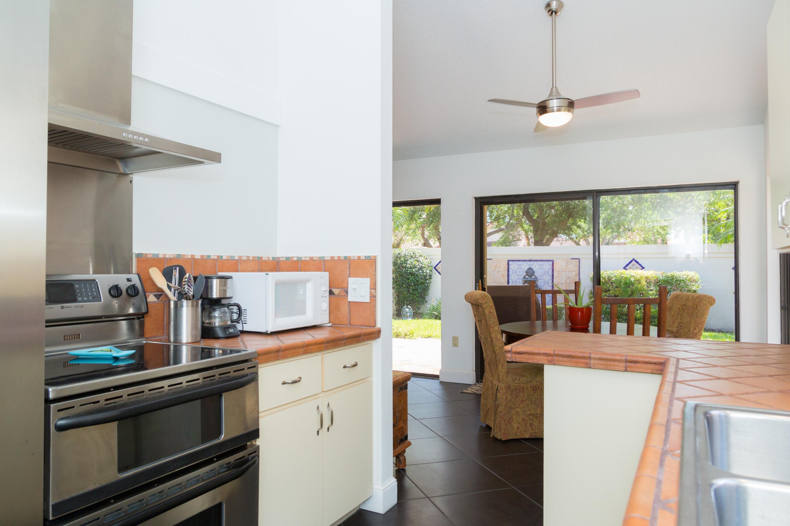 Welcome Home to Saratoga Pointe! Located on a beautiful corner lot in a very charming, non-gated community close to the Palm Beach Outlets and City Place, you will find this pristine 3 bedroom, 2 bathroom updated home, light and bright, with vaulted ceilings, split-bedroom floor plan and a fully fenced-in backyard that is extremely private and perfect for dining & entertaining. From the moment you walk in you will be pleased to find an open layout, high ceilings, custom flooring, select updated appliances and full sliding glass doors leading from the living room to an amazing backyard where you can easily imagine yourself enjoying a barbeque with family and friends or a quiet cup of coffee as you read the morning newspaper. The en-suite master suite is beautifully appointed with