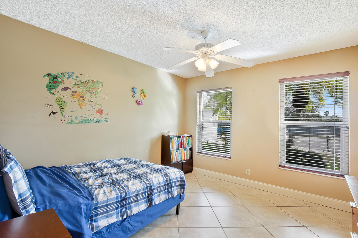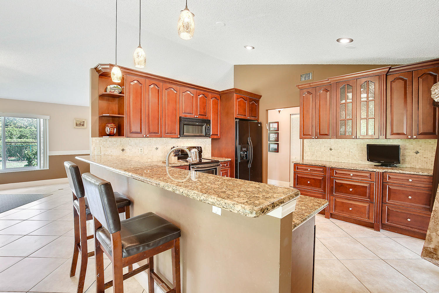 Come and see this charming 3/2 located on an oversize cul de sac lot! This home shows pride of ownership from the moment you arrive. The home has tile flooring throughout with updated kitchen and bathrooms, newer roof (2015), newer A/C, newer hot water heater along with IMPACT resistant windows and doors for efficienct living. Large rear yard with no rear neighbors and room for a pool (Landscaping is covered by monthly maintenance). Walking distance to HOA amenities and local places of worship. This won't last long!