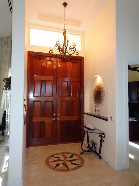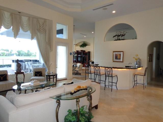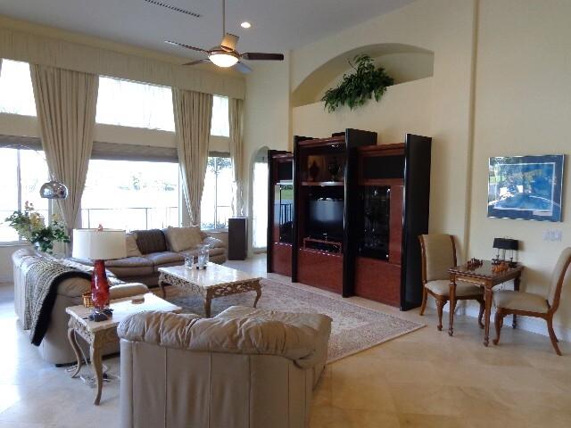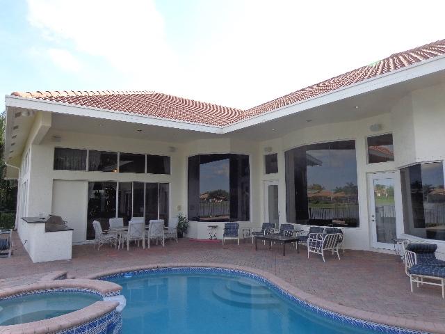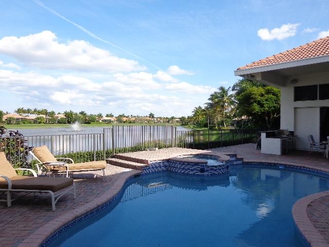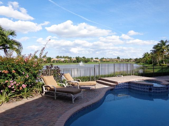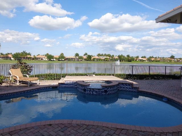 Fantastic water views! 4 bedroom + den home with wide water views! Open floorplan, lots of upgrades! Saturnia marble floors w/ inlay, coffered ceilings w/ crown molding. Living room has large wet bar w/ granite counter. Kitchen w/ granite, double sinks, desk area, huge pantry. Patio with summer kitchen, heated pool/spa w/autofill. Irrigation from the lake. Beautiful water views everywhere! Ibis requires at least a social membership for $40,000 plus annual dues $6,230 + tax. Club renovation/expansion $159/mth for 10 yrs. HOA $80/mth + POA $261/mth.