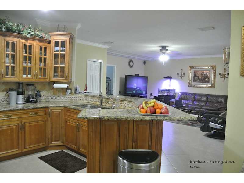Fabulous waterfront pool home. Rarely available in this highly sought after neighborhood. Recently painted inside and out. Remodeled kitchen with granite and custom island overlooking pool and lake, family room open to kitchen,crown molding in every room . volume ceilings, one bedroom suite downstairs, 4 big bedrooms upstairs, gorgeous master bath, covered screen patio, accordian shutters, 2 newer AC units, garage has sink and gas stove, 1 flat screen TV stays, fountain stays, Must See this gorgeous home