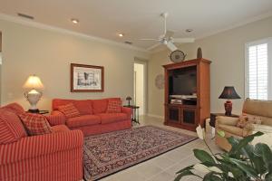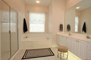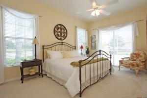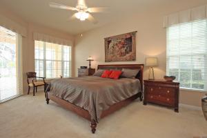 $3,000 appliance allowance. This spacious Divosta built home offers resort-style living. After entering the 24 hr. manned gate you are greeted by the TOWN CENTER and the amenities it offers. Included are 12 miles of pathways and bridges along scenic lakes. River Walk delivers 3 pools, fitness center, clubhouse, 8 Har-Tru tennis courts and a deli. This home is open and inviting with white plantation shutters and crown molding in all common areas. The 2 Master bedrooms have walk-in closets. There is an abundance of storage thru-out the house as well as in the 2 car garage. Ceiling fans in most rooms including porch which faces the lake. A 1650 sq.ft. screened enclosure and very large driveway are a rare find. All sliding doors are protected by accordion shutters. Oversized lot. A MUST SE