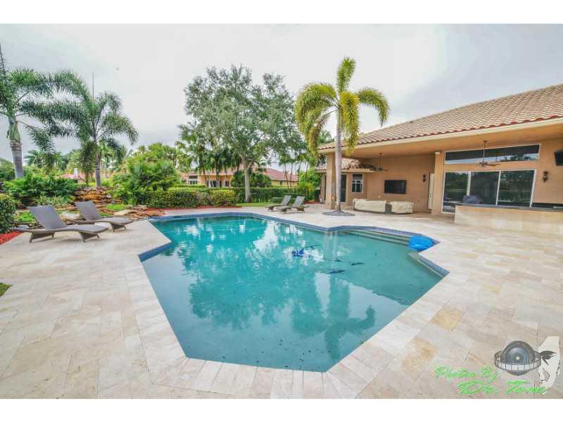 Magnificent premier family estate home on one acre corner lot of lush landscaping, dramatic foyer, volume ceilings, custom lighting, surround sound system, master bedroom huge walk in w/glass enclosed shoe cabinet. This open floor plan is a dream for fami ly and entertaining, gorgeous free form inground pool,/waterfall/patio new travertine marble, built in grill/bar/ice/fridge/70 in TV, with basketball court. THIS is a house to call HOME!