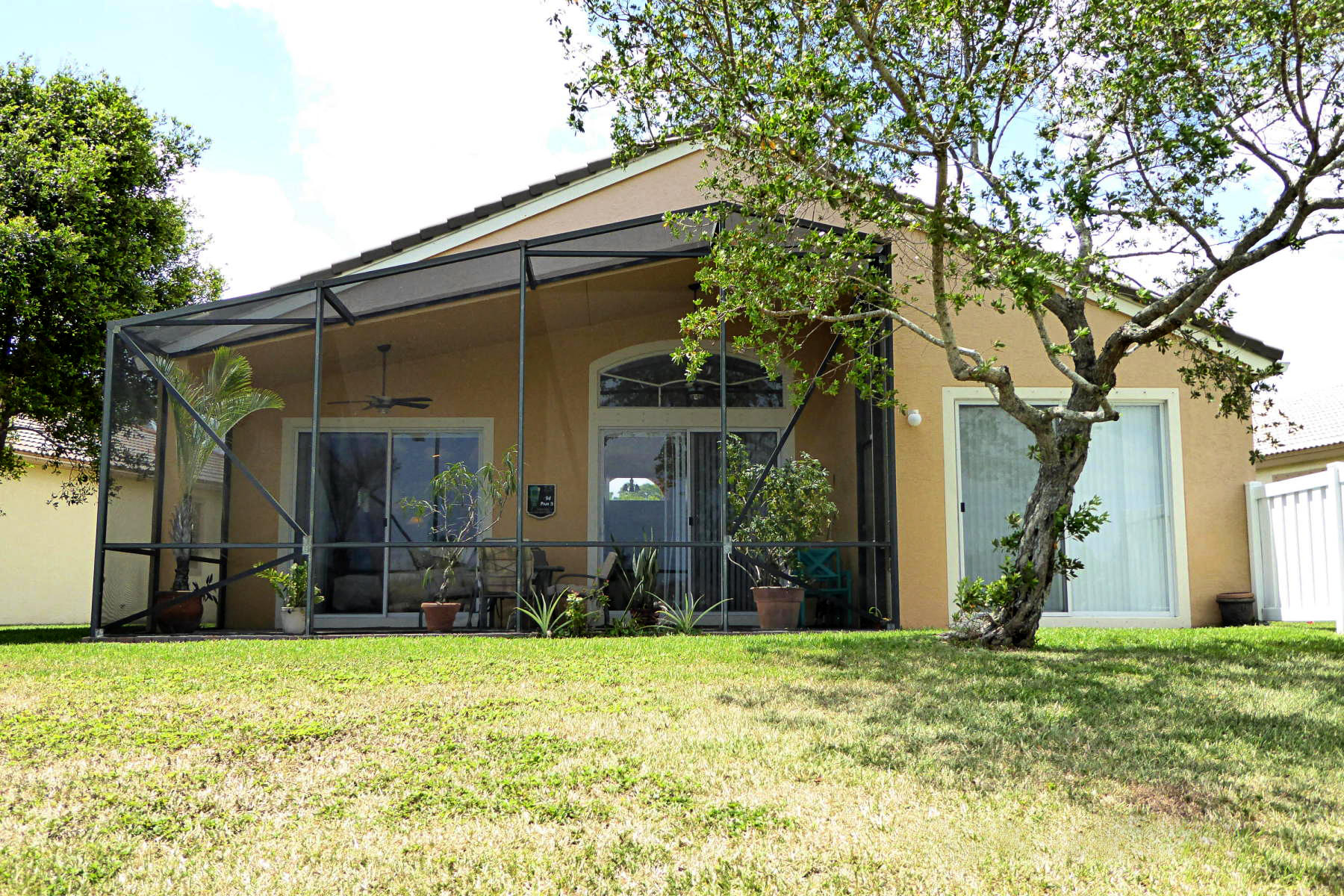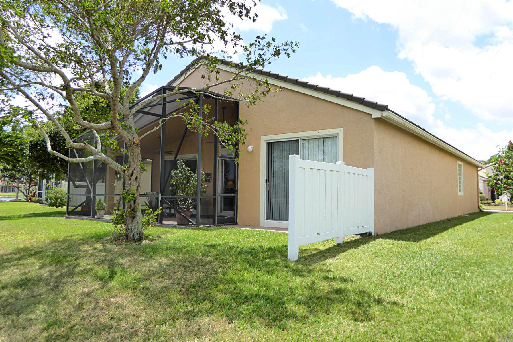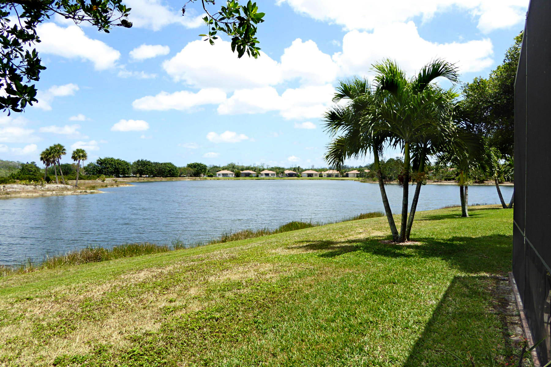 Extraordinarily well maintained home. Absolutely sparkling three bedroom, two bath, on one of the most beautiful waterfront lots in the community. Granite kitchen, large light color ceramic tile laid diagonally. Master bedroom has two walk-in closets, with SGD overlooking lake. Master bath with dual vanities and whirlpool tub, with separate shower. Lovely listello in foyer. Large 13x24 screened porch overlooking lake. Dual sliders in family room, vaulted ceilings with ceiling fans throughout. Two car garage with workbench, and hurricane shutters included. Great community amenities include large community pool, children's pool, tennis courts, basket-ball, exercise room, and bocci ball court. 24 hours manned gated security. Ten minutes to PBI airport, five minutes to Turnpike