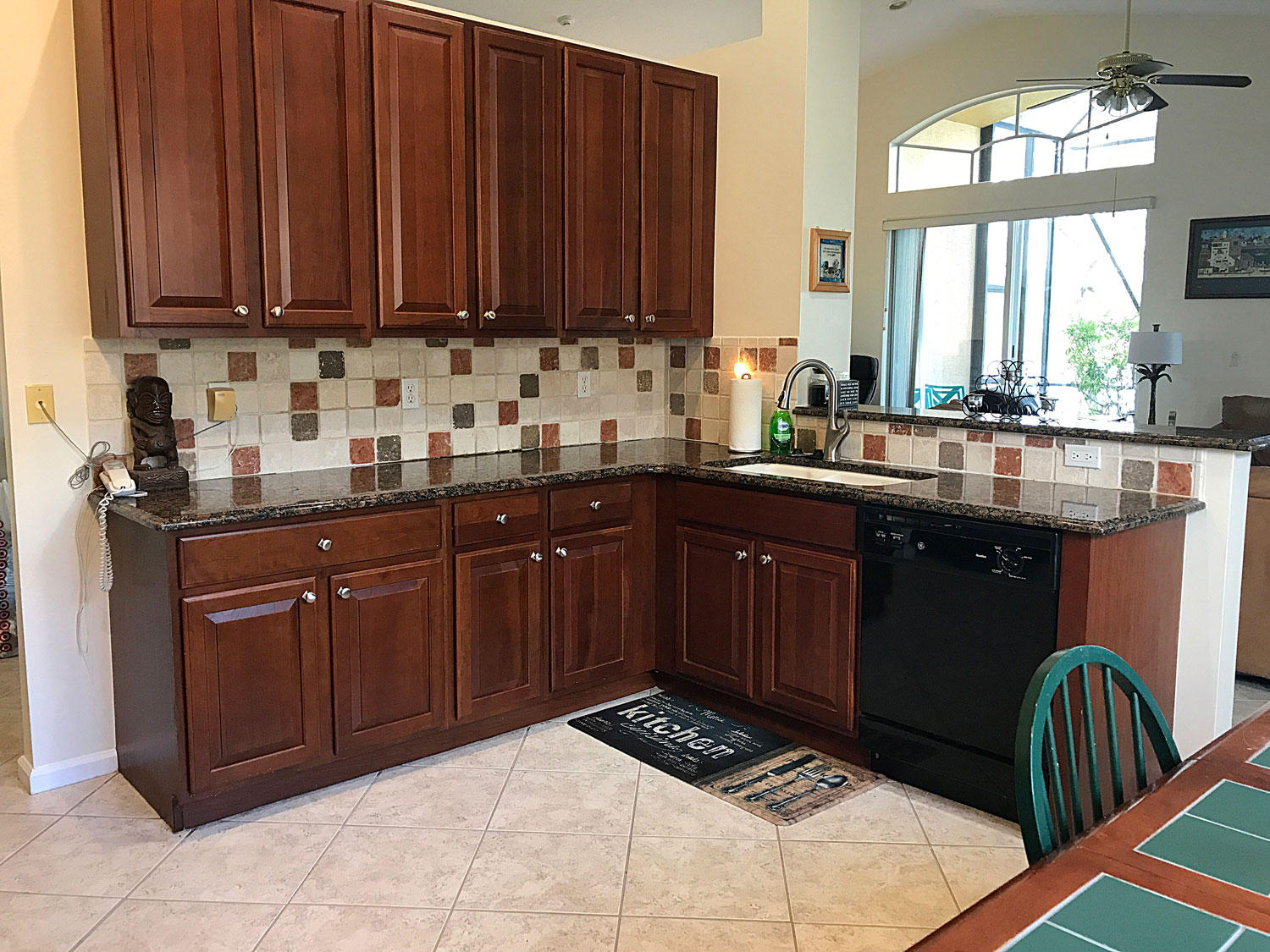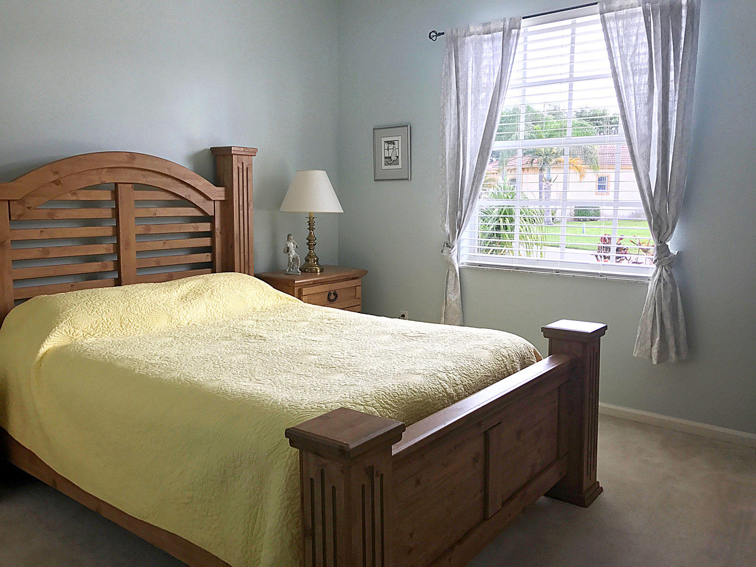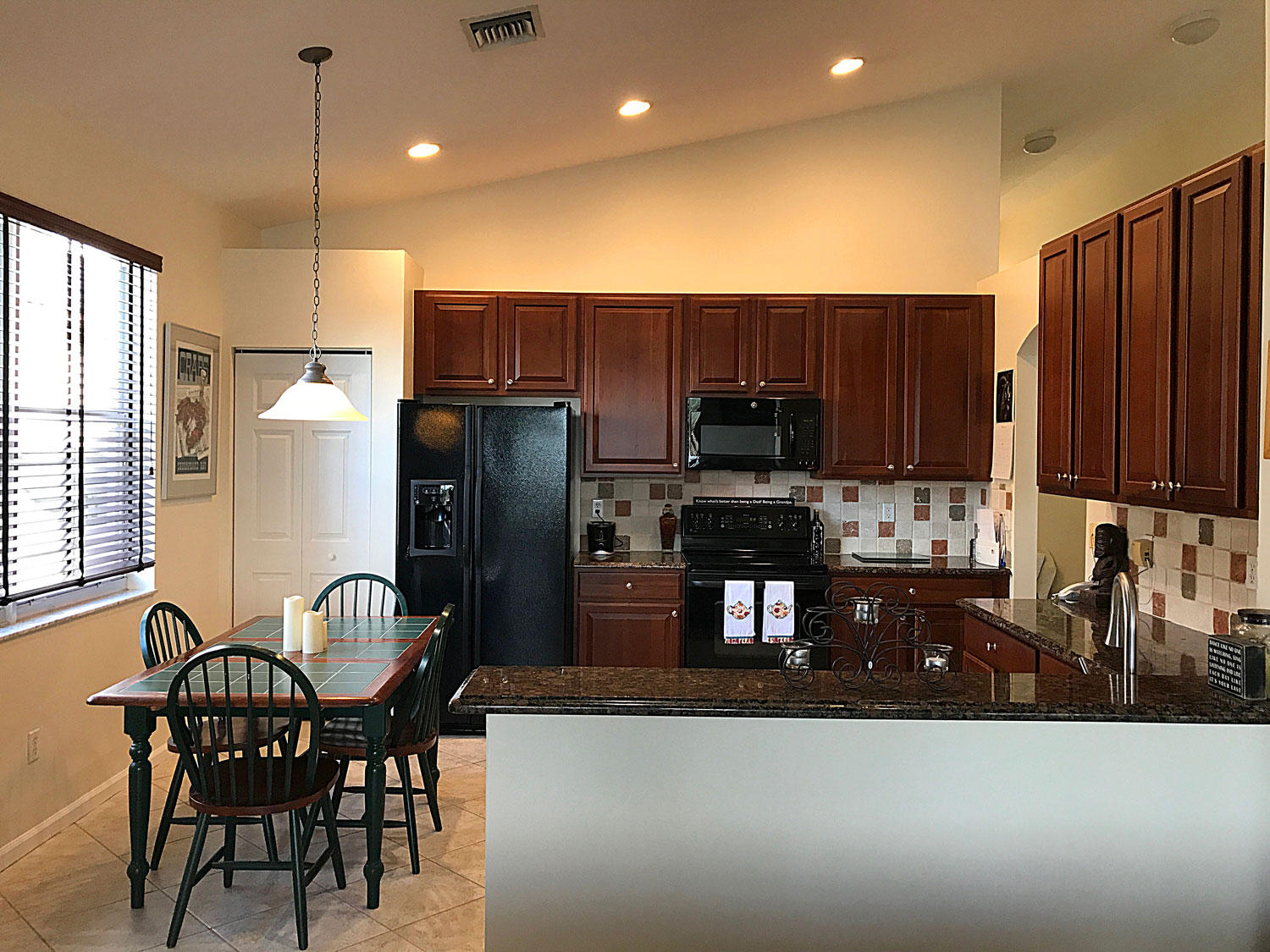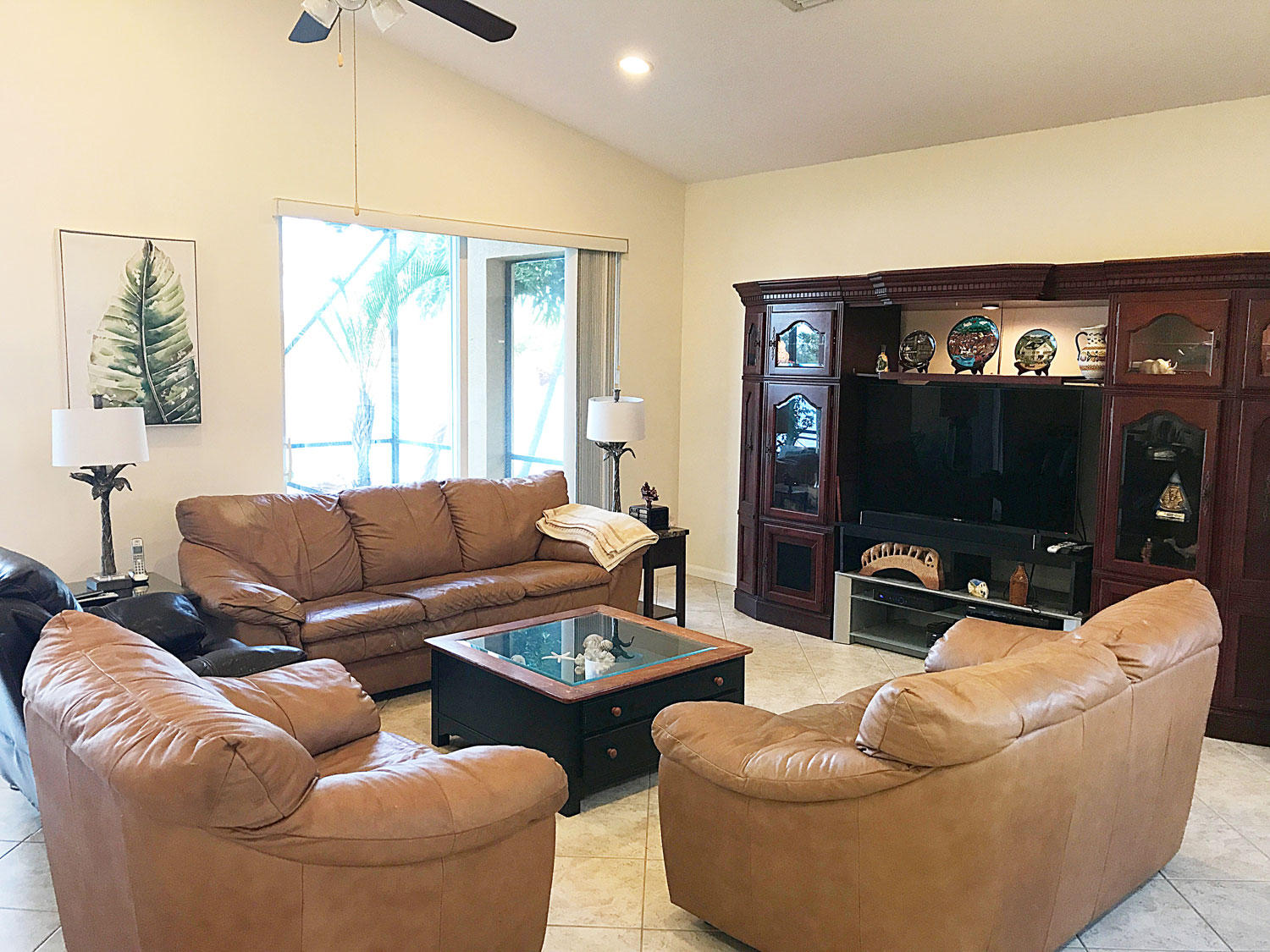 Extraordinarily well maintained home. Absolutely sparkling three bedroom, two bath, on one of the most beautiful waterfront lots in the community. Granite kitchen, large light color ceramic tile laid diagonally. Master bedroom has two walk-in closets, with SGD overlooking lake. Master bath with dual vanities and whirlpool tub, with separate shower. Lovely listello in foyer. Large 13x24 screened porch overlooking lake. Dual sliders in family room, vaulted ceilings with ceiling fans throughout. Two car garage with workbench, and hurricane shutters included. Great community amenities include large community pool, children's pool, tennis courts, basket-ball, exercise room, and bocci ball court. 24 hours manned gated security. Ten minutes to PBI airport, five minutes to Turnpike