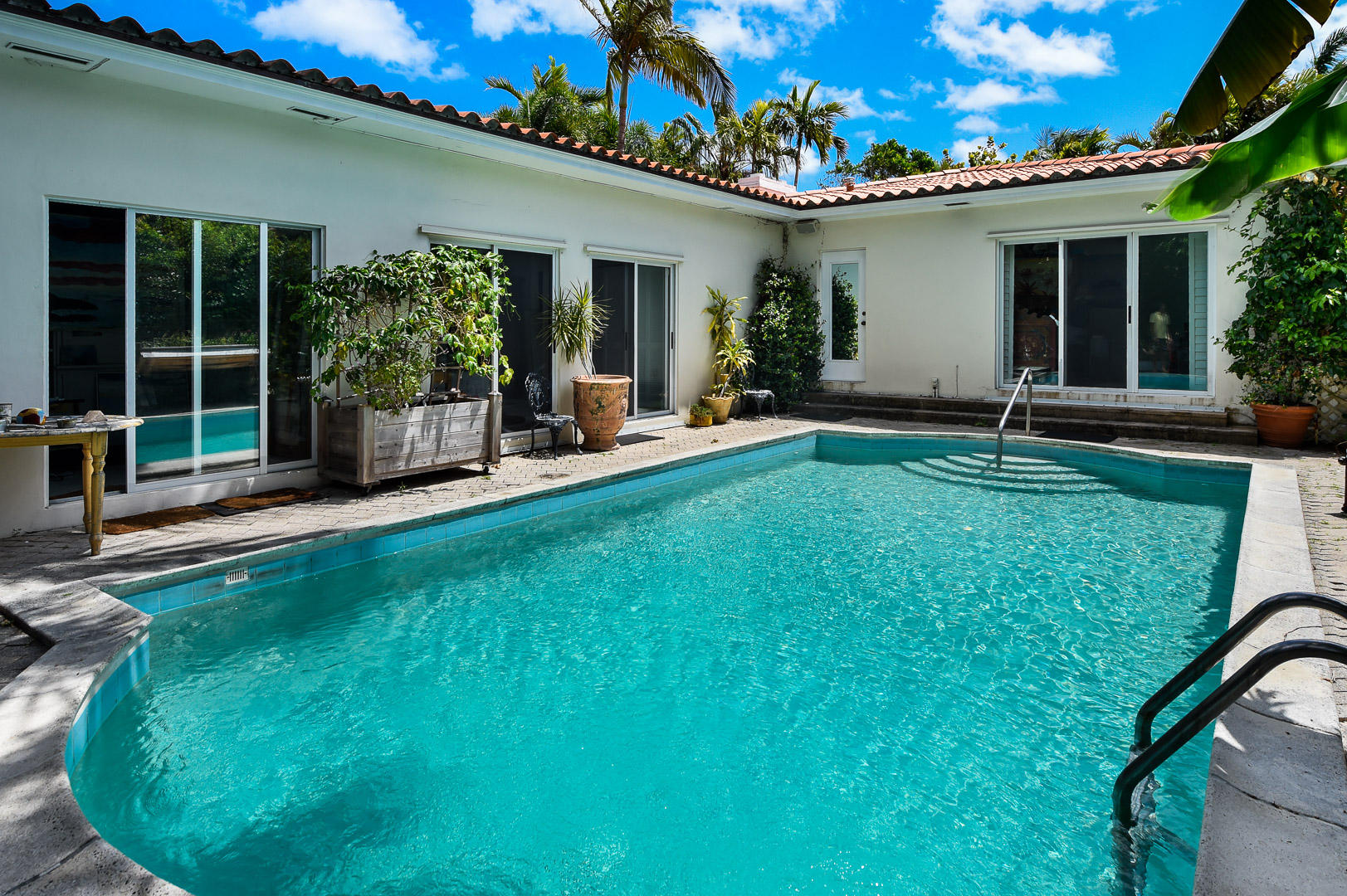 Charming light and bright 3BR/3BA Beach Bungalow with fireplace, garage, and large pool. Located at the corner of Caribbean Road and North Lake Way - great North End location with beach access. Lot size approximately 10,000 square feet.