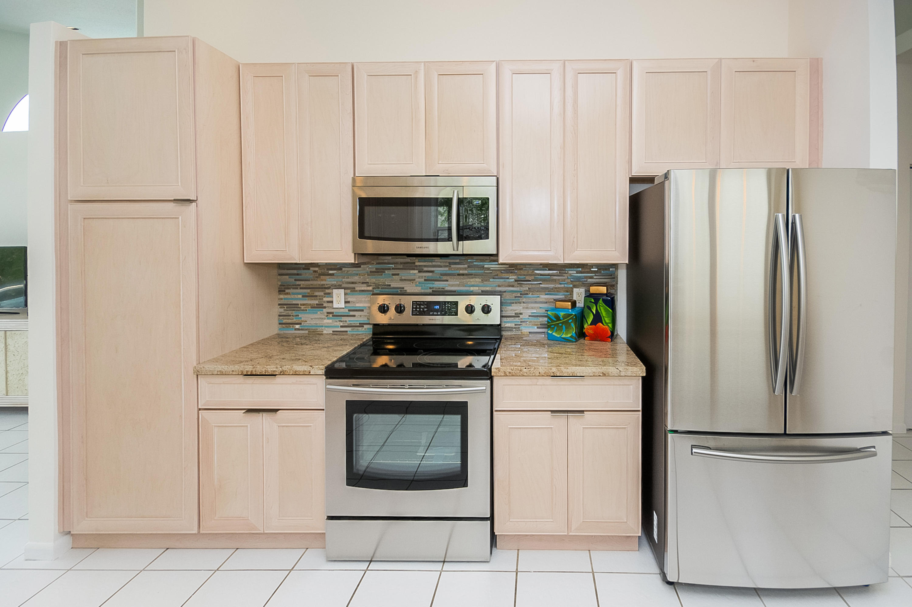 Waterfront, backing to the Hillsboro canal, this charming 3 bedroom 2 and 1/2 bath split plan features a Schuler kitchen with Champaign glaze maple wood cabinetry, new stainless appliances, volume ceilings, neutral tile flooring, open heated pool, and hurricance shutters!