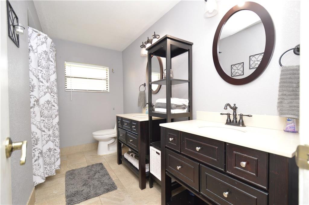 Gorgeous 4 bed 2 bath single family home with 2 car garage on oversized waterfront lot. Home features wood-tile throughout. Remodeled kitchen with wood cabinets & granite countertops. New AC 2016. Roll Down shutters on windows, All Exterior doors are Impact including sliding doors. Real Fireplace. Split bedroom floorplan. Glass enclosed covered patio overlooking pool. Huge backyard with pool, lots of room for entertaining, many trees and views of canal. Tropical paradise. NO HOA!!