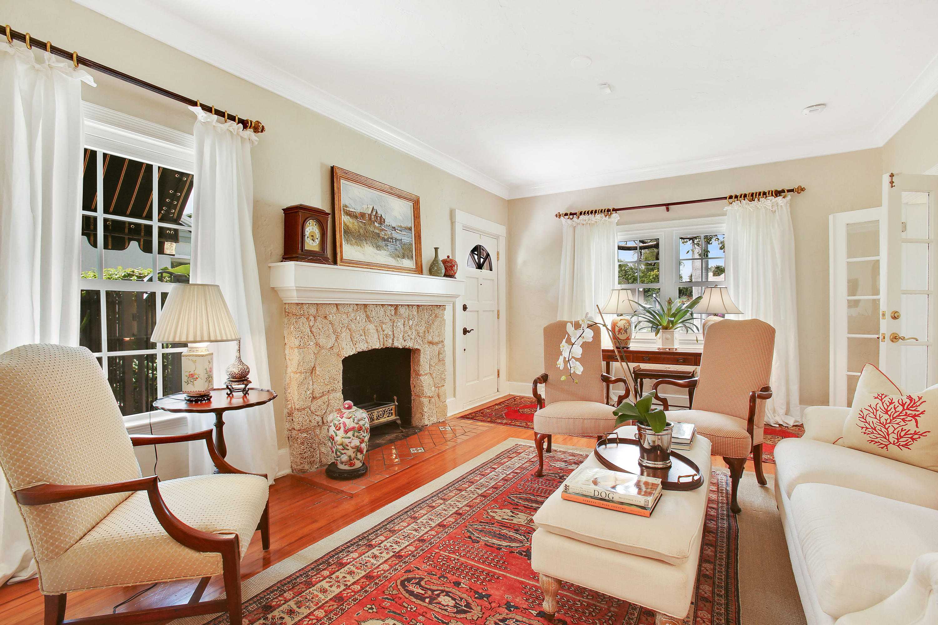 Completely renovated in 2016 Charming Spanish Mission home. This 2/2 main house with a guest cabana features new kitchen, baths, impact windows and doors, new appliances, newly enclosed den, Landscaping, awnings, recoated roof and much more! beautiful original features include Coquina fireplace, pecky cypress ceiling in den, and paver driveway and pool area.Wonderful vacation home or year round residence with heated pool and beautiful landscaping gives a resort feel. Walking distance to downtown, trendy restaurants, shopping and grocery.