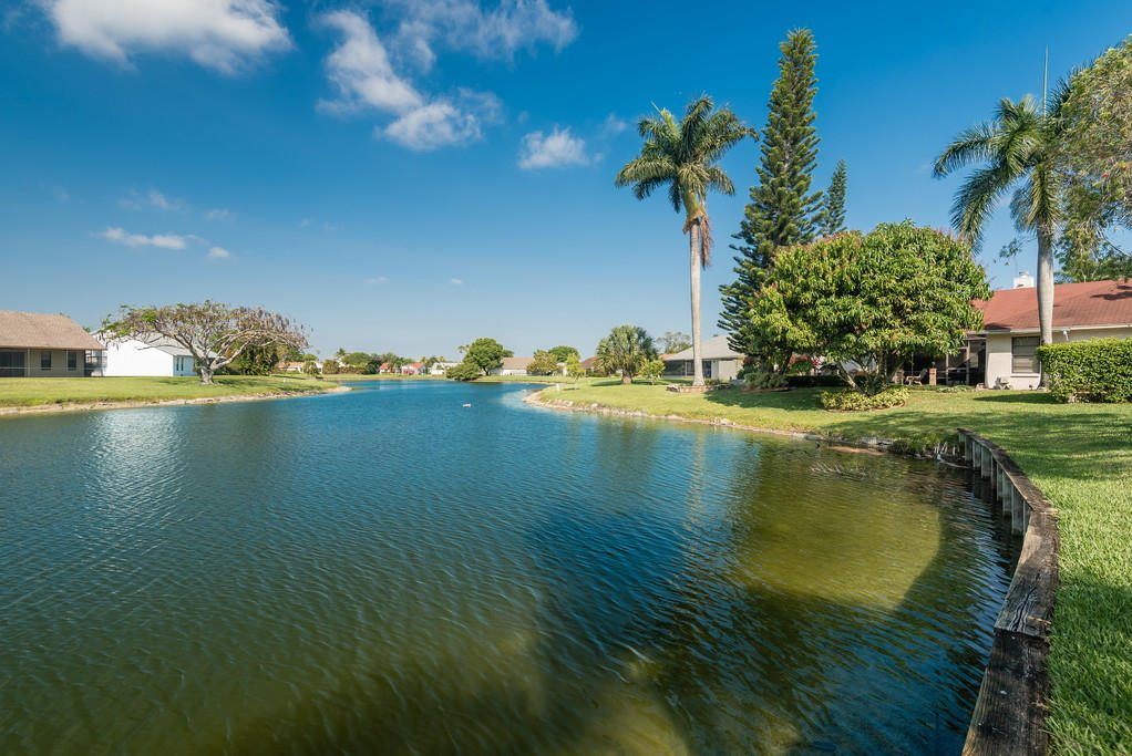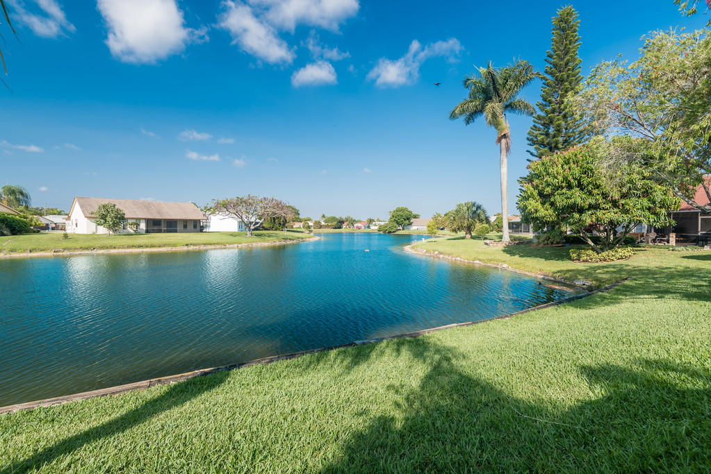 Gorgeous, light and bright 3 Bedroom / 2.5 Bathroom Townhome in Boca Fontana with stunning lake views. Vaulted ceiling Master bedroom with lake view upstairs with whirlpool tub. Stunning lake views from spacious living room with wood-burning fireplace leading onto screened-in patio. Dining room and bright eat in kitchen and snack bar. Accordion shutters on all upstairs windows. 2 car garage with space in driveway for 2 cars. 2 community pools (1 adult only, 1 all ages), 2 clubhouses, basketball and tennis courts.