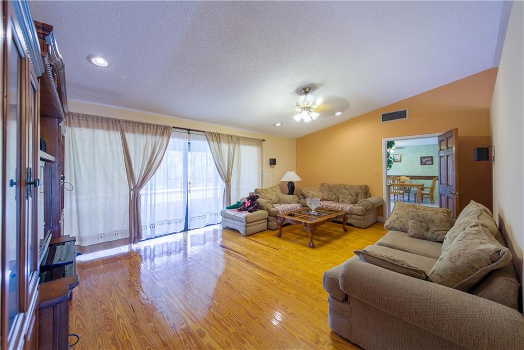 Spacious pool home featuring wood floors throughout! Vaulted ceilings in living & family rooms! S-Tile roof & flat deck roof replaced in 2014. Solar heated pool & solar hot water heater. Remodeled kitchen with wood cabinets & granite counter tops. Stainless refrigerator replaced in 2014, microwave replaced in 2015, range & dishwasher 2007. Master bathroom remodeled with double sink vanity w/ cultured onyx tops, separate shower & tub with whirlpool. Bathroom 2 features double sink vanity & large shower.