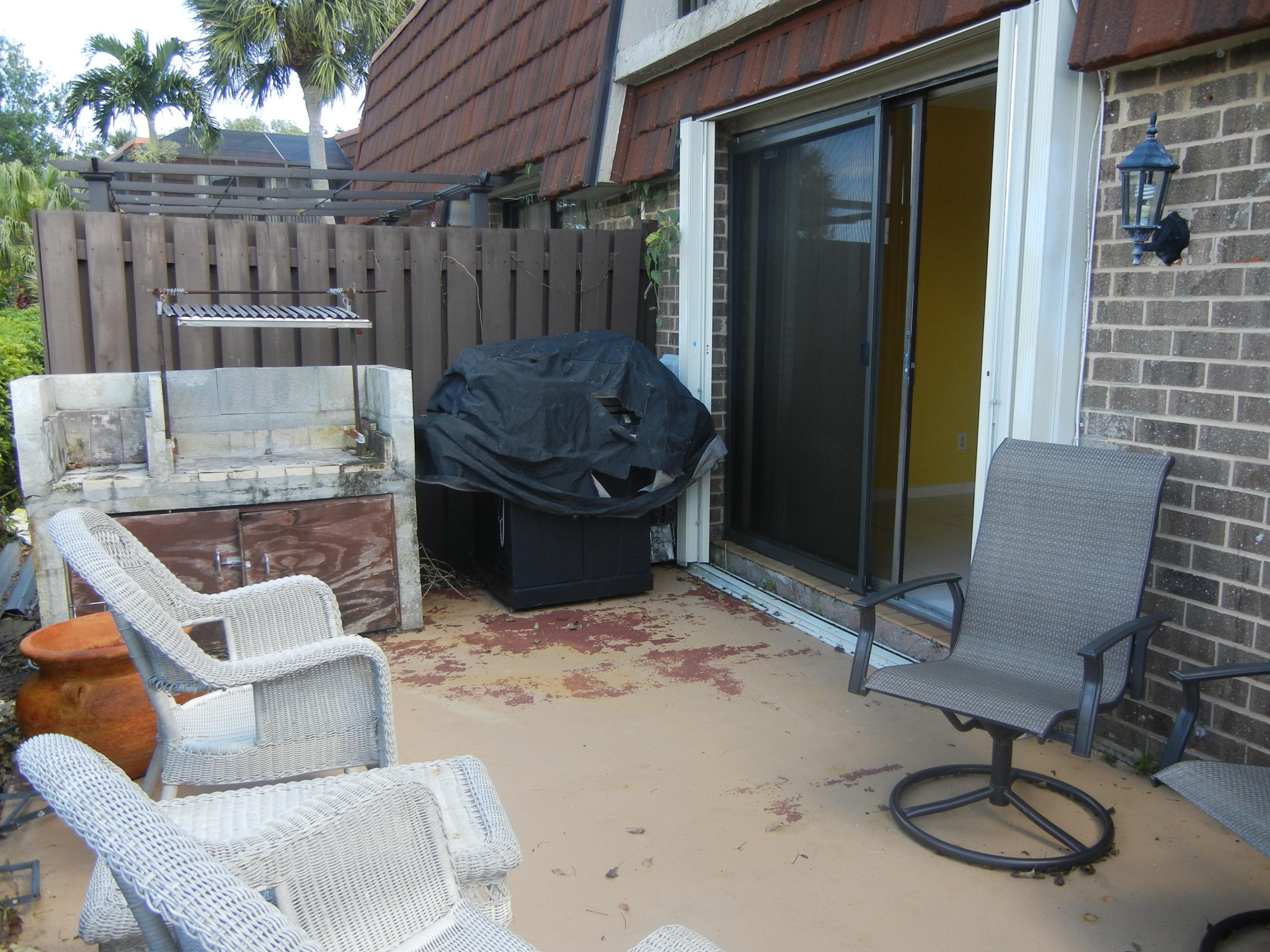 Conveniently located 3 bedroom 2 & 1/2 bathroom townhouse with a garage plus assigned parking for 3 additional cars in front of the townhouse. Master Bedroom and 2nd bedroom each have a balcony overlooking the lake. Lots of private outdoors space, patio with built in BBQ area and a front lanai area. Updated kitchen with Granite counter-tops.Tile Throughout! Clubhouse has fitness center & business center & pool.Walking distance to school, close to turnpike, shopping and restaurant. Great locations. Must see to appreciate all of the potential and outdoor spaces with amazing views .