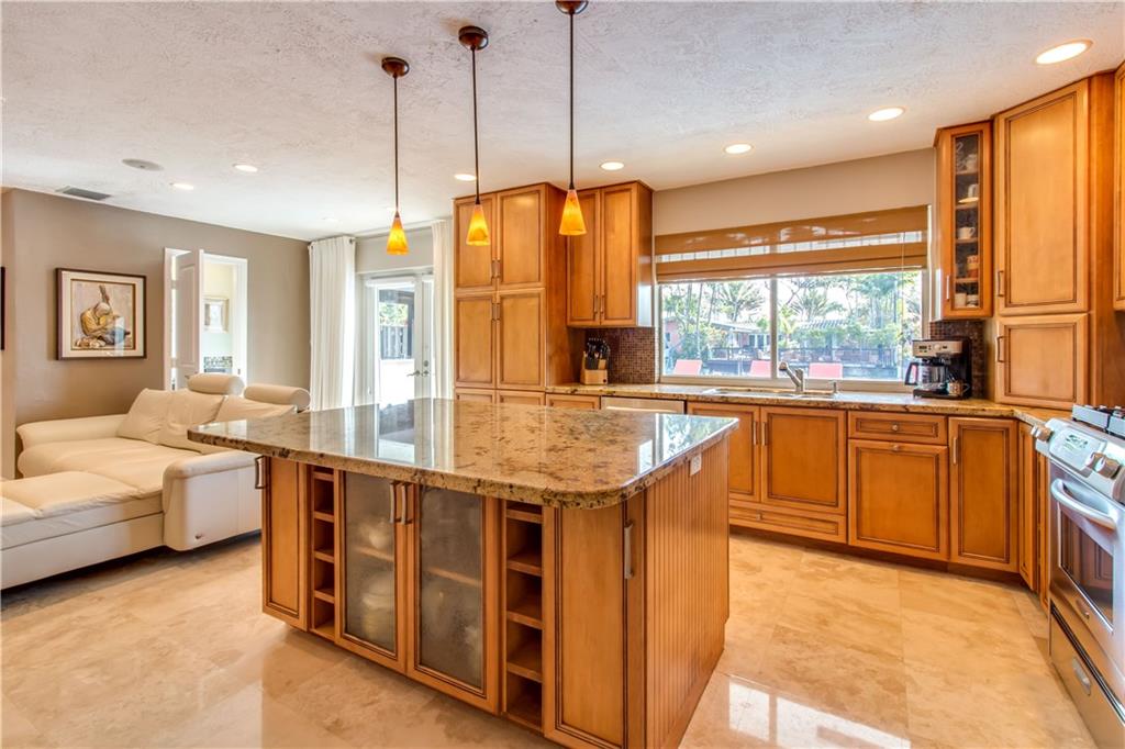 Designer favorite! Luxury living in a sought after neighborhood. This Coral Ridge Isles waterfront home with a beautiful pool patio, covered outdoor kitchen and bar makes for the ultimate Florida lifestyle. This house has it all: updated kitchen with chef-quality appliances, gas range, granite counter tops and custom cabinetry. Office/den with gorgeous built-ins, grand foyer with high ceiling, marble floors in living room, and partial impact doors and windows are just a few of the many amenities here.