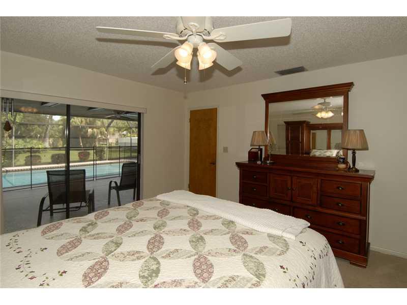 Wow! This home is a real beauty. It has a large tropical private backyard with a water view. Immaculate 4BR/2BA pool home with updated kitchen and baths. Kitchen has oak cabinets with stainless steel appliances. Baths updated with new vanities, granite co unters, tile, and fixtures. Split bedroom plan with lots of storage. Large screened pool area with built in Jenn-Air grill. Just perfect for entertaining! Kiddie fence around the pool. Central location close to dining, shopping and "A" rated schools.
