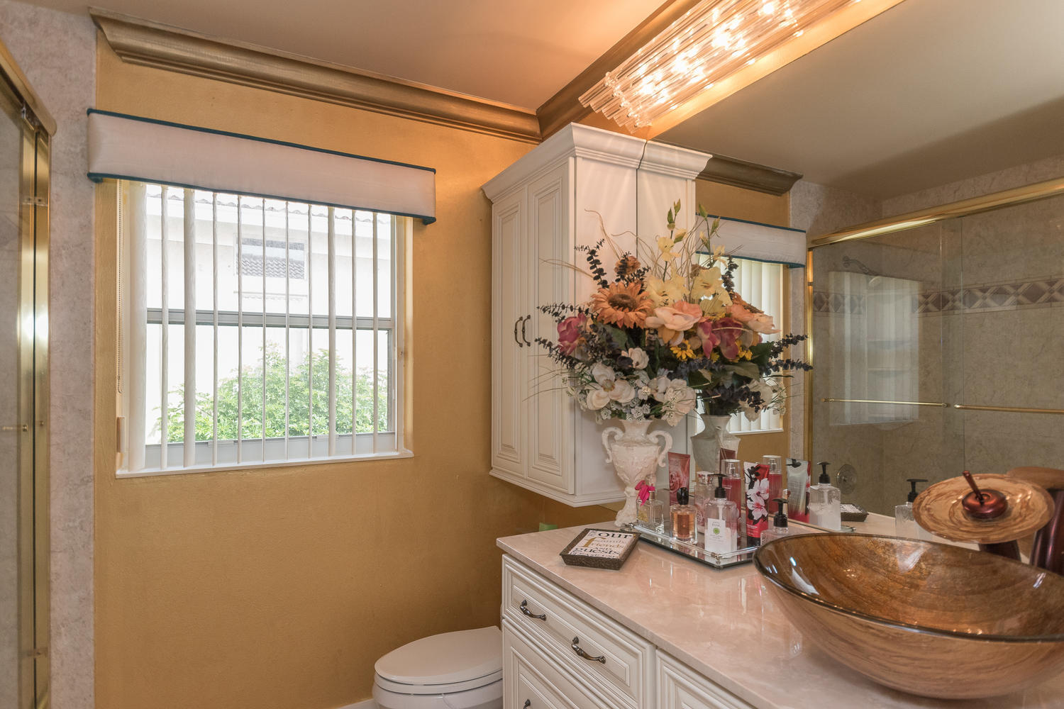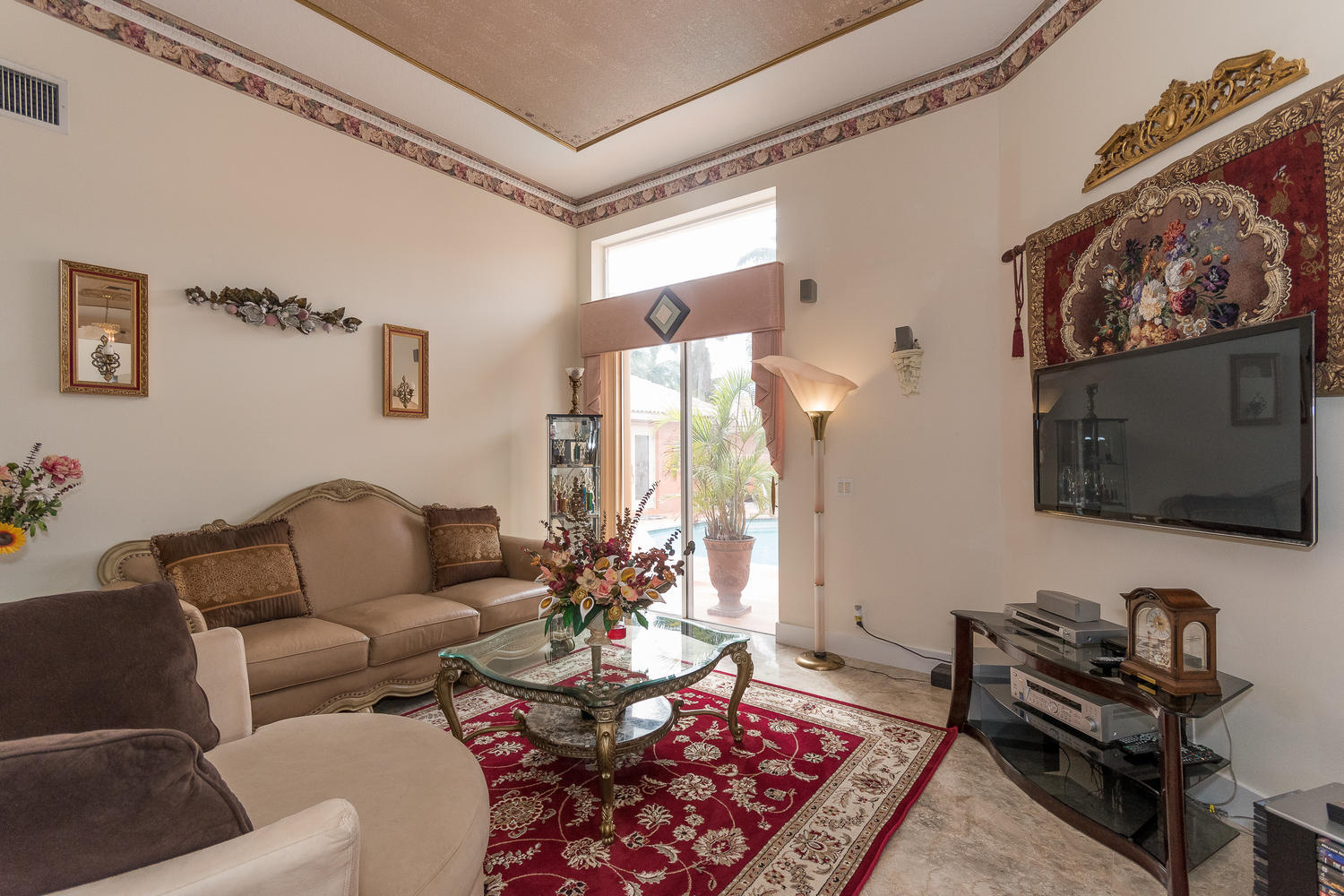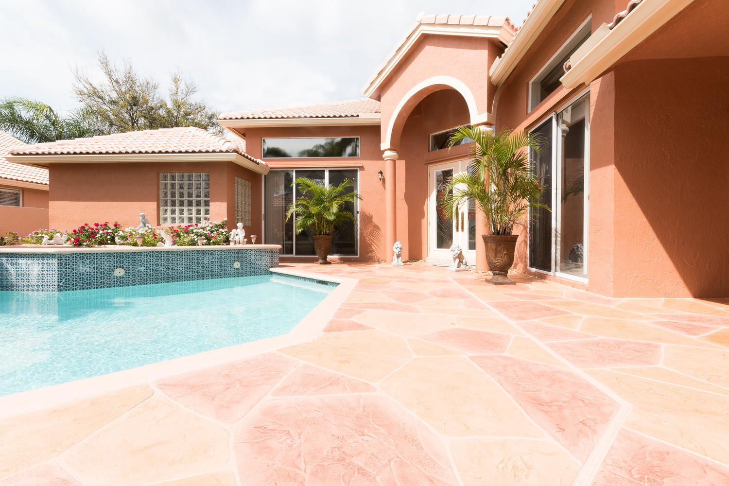 Private Paradise Oasis! Pristine classic courtyard home-beautiful pool+heated spa*Incredible design with high ceilings*Granite+white designer cabinets in kitchen*Marble Floors+Custom Finishes*Spacious living space*4BR/3BA Courtyard home-wonderful open floor plan!Separate guest-house includes bedroom+full bath.Pool/heated spa are in courtyard-maximum privacy+separate rear yard*Updated Master bathroom-full size jacuzzi tub+large separate shower*Enjoy eating in dinette area or at counter or separate dining room where you will have plenty of room to entertain and relax.The master bedroom,guest house,family room and bedroom #2 all overlook private walled-in courtyard. This is Florida living at its finest!Clubhouse guard gate,tennis,fitness+resort-style pool. HOA includes internet+premium TV.