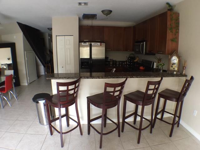 Rarely available, Mango Place...just blocks to Downtown Fort Lauderdale. Custom Granite/stainless kitchen, open floor plan leads to a nice private yard, tile on first floor and vinyl laminate wood flooring on upper level. All 3 bedrooms upstairs with a HUGE master suite and whirlpool tub with in master, dual sinks. Security gate, This is a great unit!