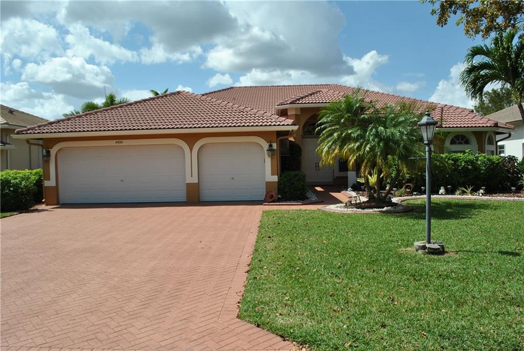 Great house 6 bedrooms 4 full bathrooms in Great community. Move in condition very well maintained. Triple split plan. Fabulous water front lot with breath taking sunset. Freshly painted interior and exterior. Granite top kitchen counters, Accordion shutters, screened in pool. Recently installed 3 car garage hurricane proof doors. 2 year old A/C unit & lots more. Newer carpets in all bedrooms, remodeled bath room. Water softener for whole house & water Osmoso under Kitchen sink. Furniture is optional.