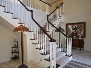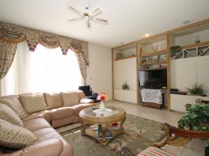 Great opportunity east of I-95 in desirable community. House has 5 bedrooms, 5 1/2 baths plus a huge office! Great lot overlooking a pond and the golf course. Enjoy 18-holes of golf at The President Country Club - membership is very affordable but not mandatory. Community is guard gated, manned 24 hours a day. Convenient location in the heart of West Palm Beach, less than 10 minutes from PBIA Palm Beach International Airport. Close to new Palm Beach Outlet Mall, City Place, Worth Avenue. 5 large bedrooms, each with en suite bath. Plus a huge office (could be 6th bed if needed). Master is upstairs, but one of the bedrooms on the first level with sliders to the pool could work as a second master suite. 3 bed and office upstairs, 2 bedrooms down.