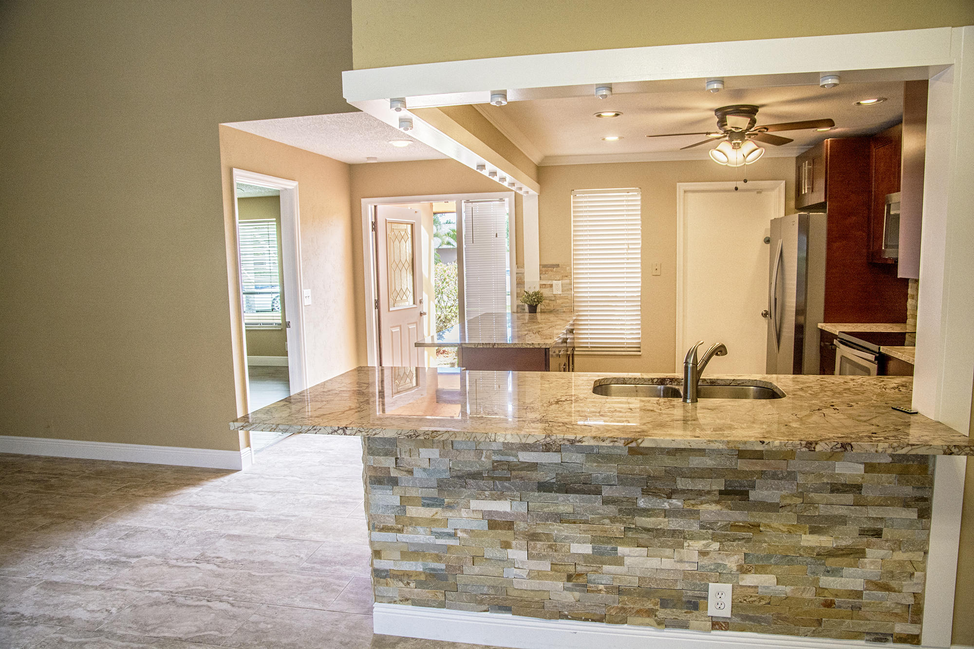 Perfect & New Condition! 4/2 home Two Car Garage .Pool . Great Area Like a New Home. Has been extensively remodeled and repaired. Over $40,000 of work was done. New Flat Roof in back , New Kitchen with Quartzite . New Remodeled Bathrooms, New ceramic tile and wood floors, New paint inside and out. , and much much more . SELLER PAYS Owner's Title Insurance, and Doc Stamps on the deed, w/ FHA BUYER"S TOTAL CASH TO CLOSE approx. $21,348.71 & PITI of $2242.71 based on 4.25%. FHA loan if BUYER finances through SELLER's APPROVED LENDER. Ask about the Palm Beach County yearly Tax Credit, and buyer down payment assistant programs. Our lender preferred