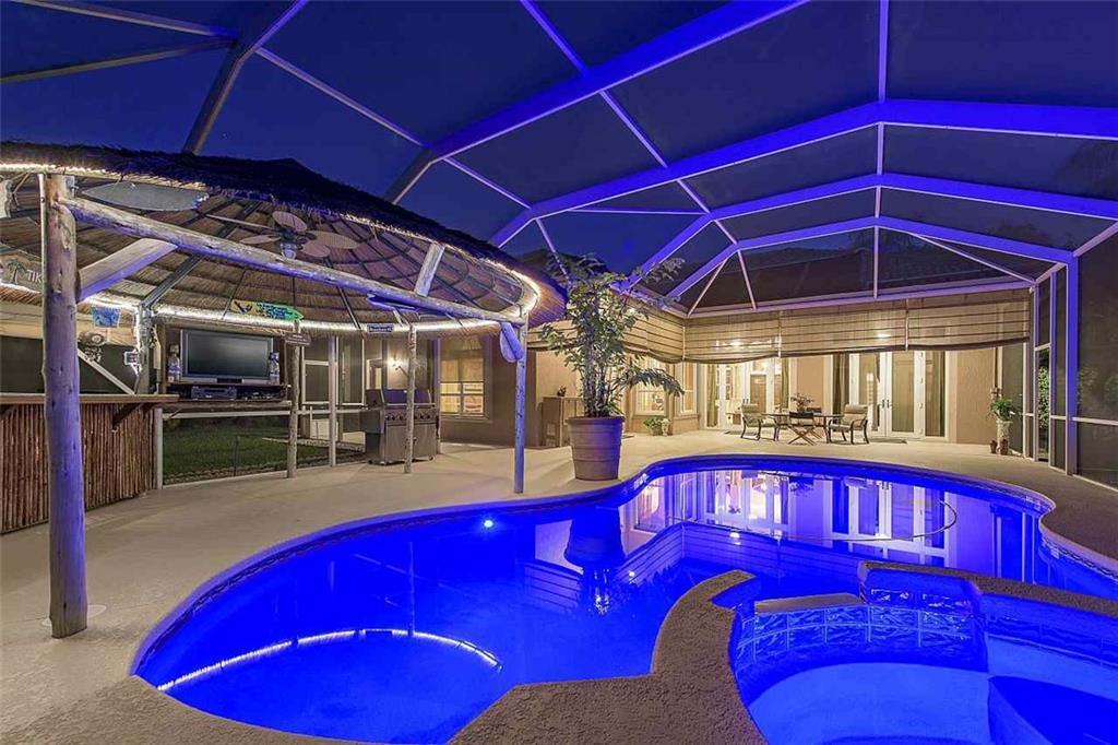 Over $200K In Upgrades! 4 Beds, 3 Baths Pool Home w/3-Car Garage On Oversized Corner Lot, Amazing Back Patio Oasis w/Tiki Hut w/Bar, Frig, Rain Gutters, Solar Heated Pool, Screened-In Patio, Lush Landscaping, Newer Kitchen w/Stainless Steel Appliances, Wine Cooler, Granite Counters, Popular Tri-Split Floorplan, Updated 2nd & 3rd Baths, Newer Water Heater, Impact Doors & Accordion Hurricane Shutters, Cul-De-Sac, LED Lights Throughout, Energy Efficient Home w/Low FPL Bill, 24-Hour Guard Gated, Must See Now