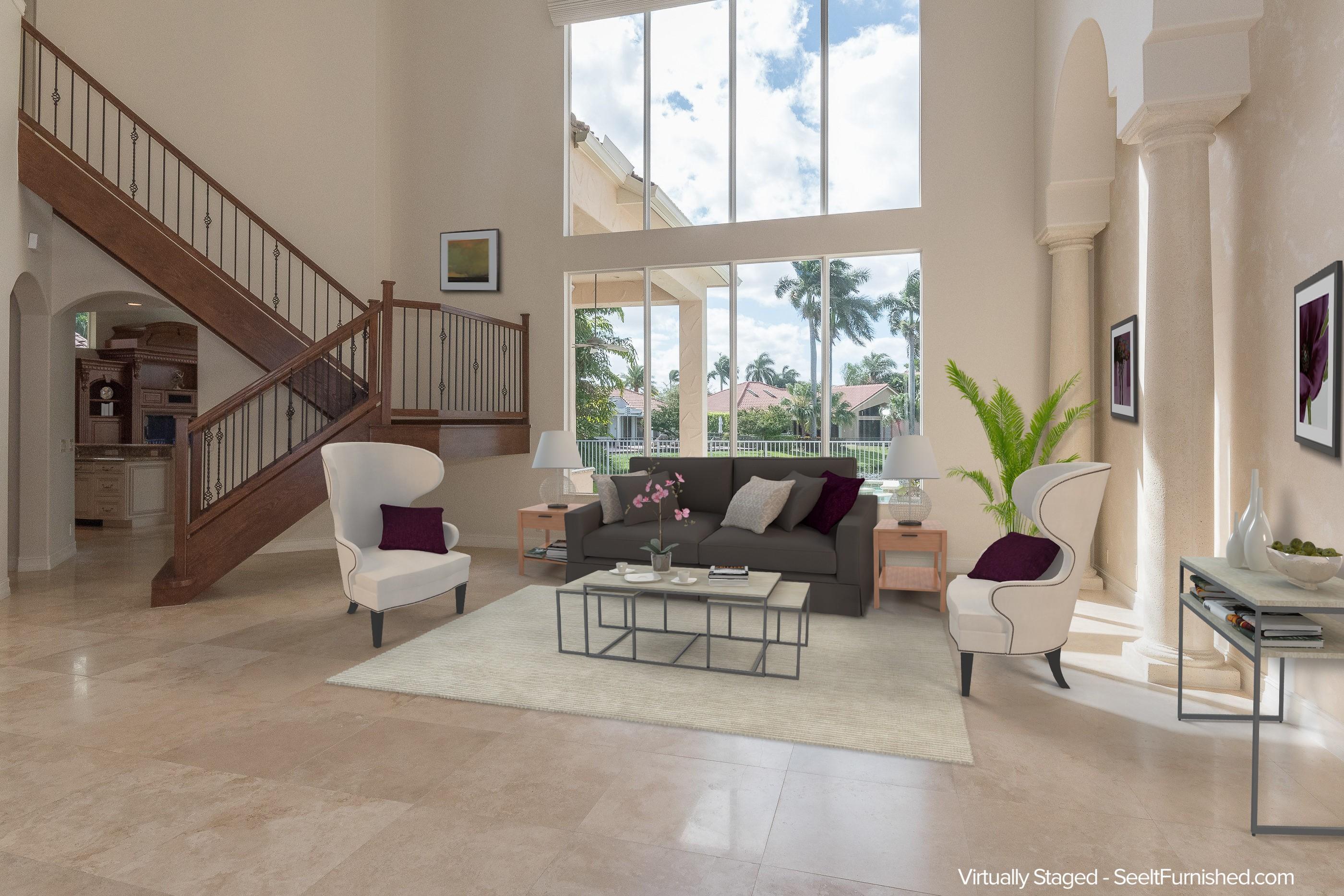 This incredible 6 bdrm, 6 1/2 bth home with library & loft is on one of the most desirable lots in Woodfield CC. The gorgeous home features floor to ceiling windows, Saturnia marble, sweeping wrought iron & wood center staircase, gourmet kitchen and a dramatic family room with a coffered box ceiling. The large master bedroom has his & her baths with 2 large walk-in closets. The office is custom built with dark cherry cabinetry. The elegant dining room walls have a pearlized Venetian plaster finish. The exterior has new landscaping, a circular driveway & a 3-car garage. The backyard features a summer kitchen, large area for sunning, dramatic pool with waterfall & grassy expanse for a play area. The sparkling south-facing lake view creates the backdrop that makes this a one of a kind propert
