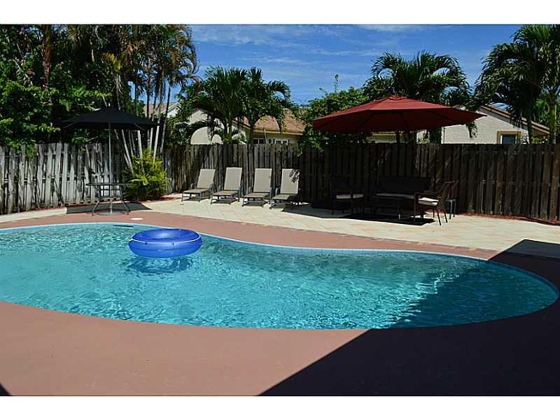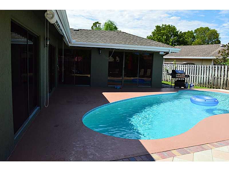 Gorgeous 4 bedroom 2 bathroom single family home with pool & 2 car garage. Features newer kitchen with stainless steel appliances, Newer Roof 2007, wood floors throughout. Split bedroom floor plan. Large master bedroom with walk in closet & renovated mas ter bathroom with double sinks, glass shower & a separate paver patio area for privacy. Laundry/Mud room also includes alarm system & speakers in ceiling. Great for entertainment glass doors overlook the pool & extended patio. No HOA and low taxes. FHA/VA