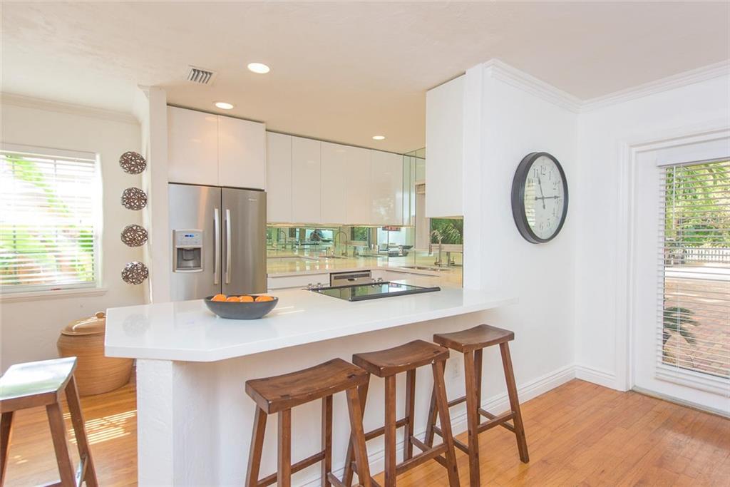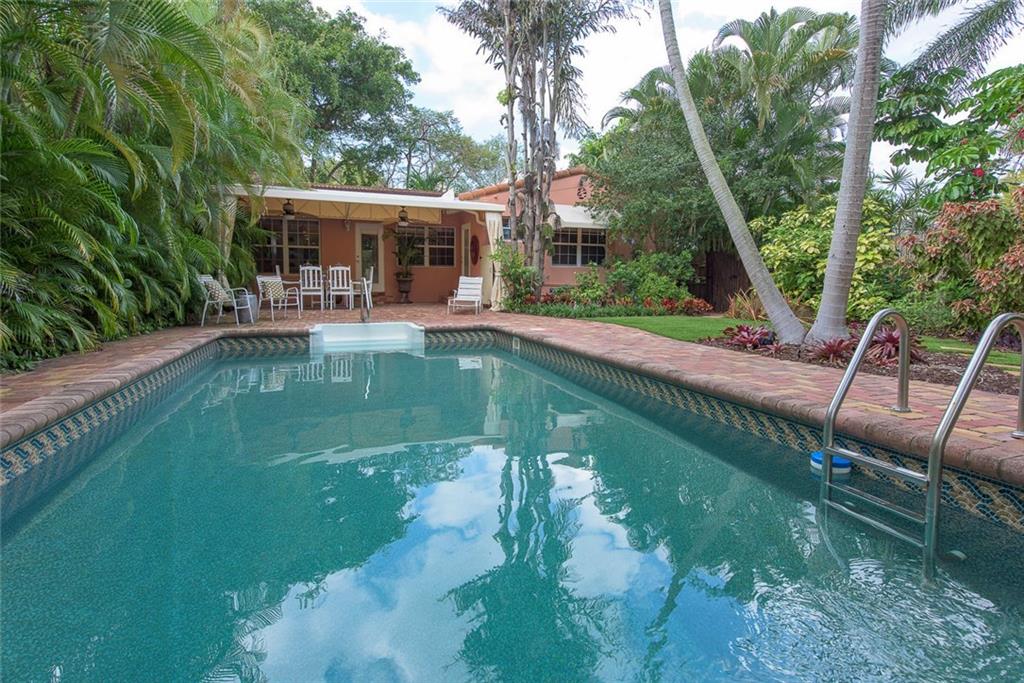 Victoria Park 3BR/2BA pool home offers; hardwood floors, a tile roof, Chicago brick paved drive, walkways and patio, fireplace, built-ins and a stylish new kitchen. An open floor plan boasts a central kitchen with spacious breakfast bar and opens to both living and family rooms. One of two guest rooms offer a wall of built-ins ideal for use as a den. Another of the bedrooms has a bath in suite and the third boasts a roomy walk-thru closet. A covered terrace overlooks a lushly landscaped yard & pool