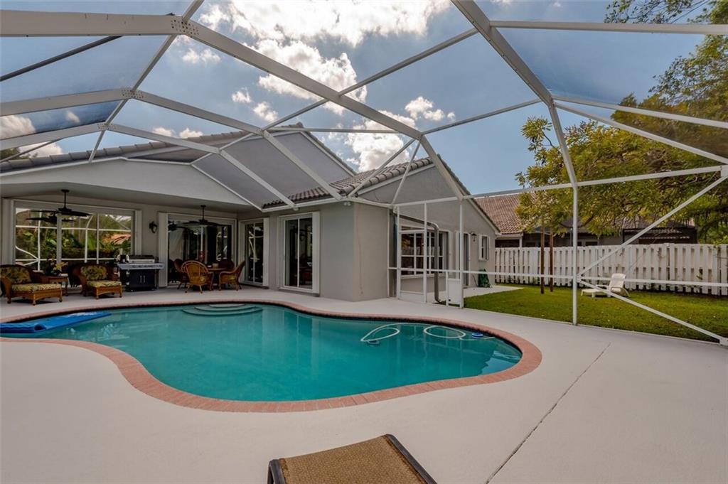 Warmth and Elegance describe this home located on corner lot. Beautifully Remodeled Custom Kitchen W/42" Cabinets, Quartz Countertops&tumblestone Backsplash, S/S Appliances, Hardwood Floors, All bathrooms remodeled,Ceiling Fans, Washer & Dryer, Tankless Water Heater, Window Treatments, Accordian Shutters & Outdoor Light Fixtures. Lovely private screened pool area & yard for family fun. New Roof 4/15/13, AC - 5/8/14 . New paint in & out. Pool Diamond brite 2 years, A+ Schools, Walk to Weston Town Center.
