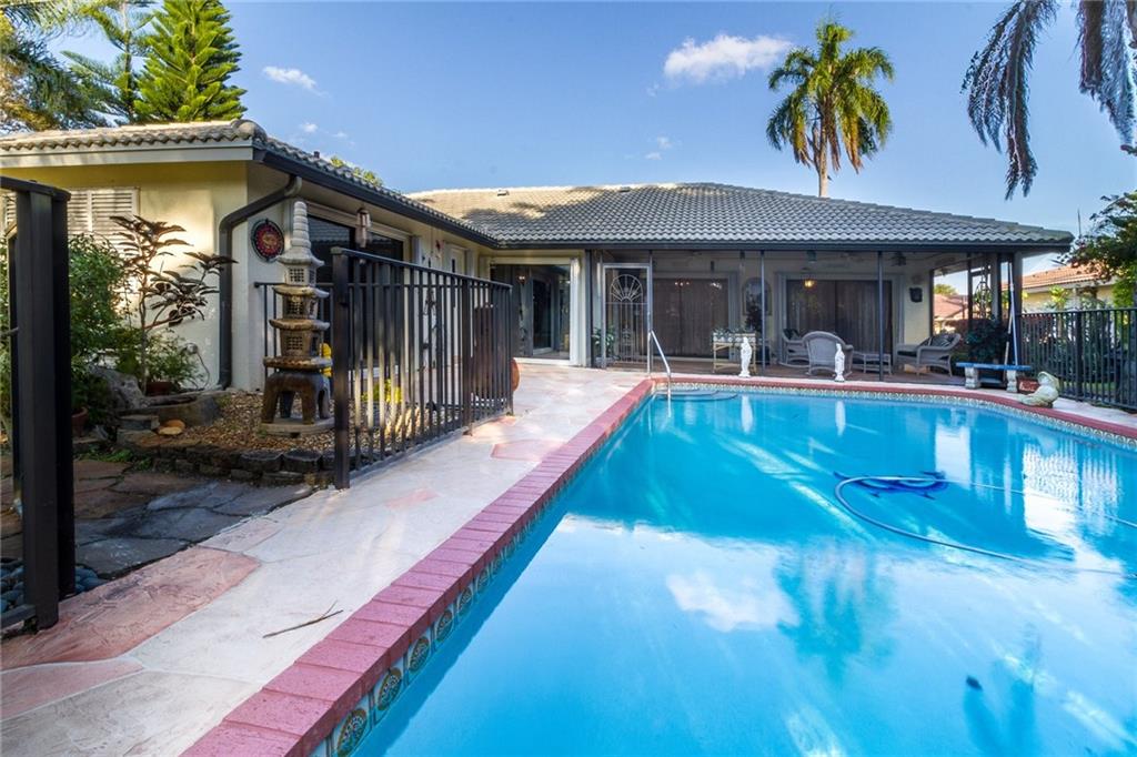 Don't miss this one! Beautifully maintained corner lot w/ lush landscaping. This 4bedroom, 2bathroom home w/ large screened in porch, in ground pool & 2 car attached garage is move in ready! Vaulted Ceilings in main living area/kitchen, bluetooth surround sound system throughout, italian mosaic inlay in bathtub/shower, custom closets in main bedrooms, built in bookcase/glass desk in office, open concept bathroom/shower in master suite.