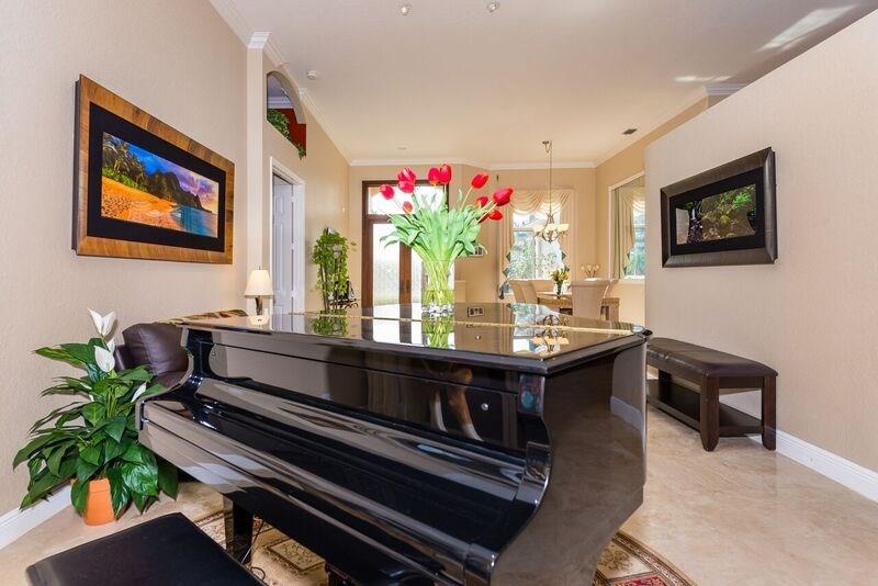 STUNNING GOLF VIEWS FROM THIS IMPECCABLE UDPATED HOME ON PREMIUM CUL-DE-SAC LOT! MARBLE/WOOD FLRS THRUOUT, CROWN MOLDING, SCREENED POOL/PATIO AREA INCL BUILT-IN GRILL, HEATED SPA, EXTENDED PAVER PATIO, SPEAKERS/PUTTING GREEN. NEW ROOF 2009, NEW SCREEN ENCL 2012, 2 ZONED A/C (ONE 1½ YR/ONE 6 YR) COMPLETE LED LIGHTING INSIDE/OUT SAVES FPL$. GRANITE KITCHEN, WOOD CABINETS, UPGRADED MARBLE BATHS, 2 BDRMS CONV TO 1 LG BDRM, EXPANDED GARAGE INCL LG BUILT-IN WORKSHOP, IMPACT FRONT DRS, ACCORDION SHUTTERS. HURRY!