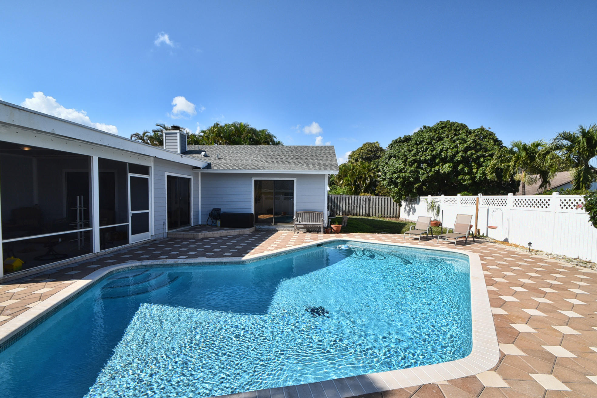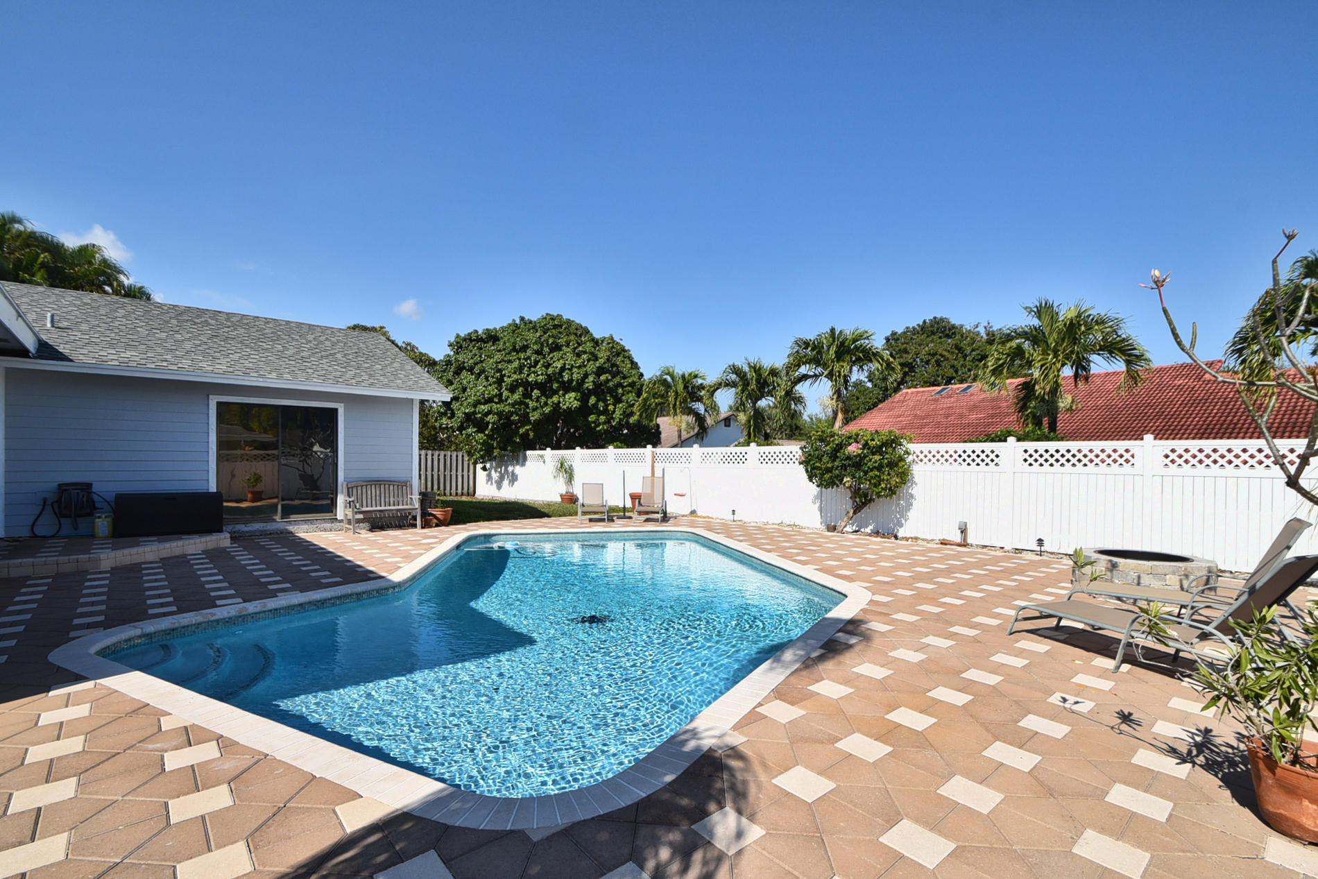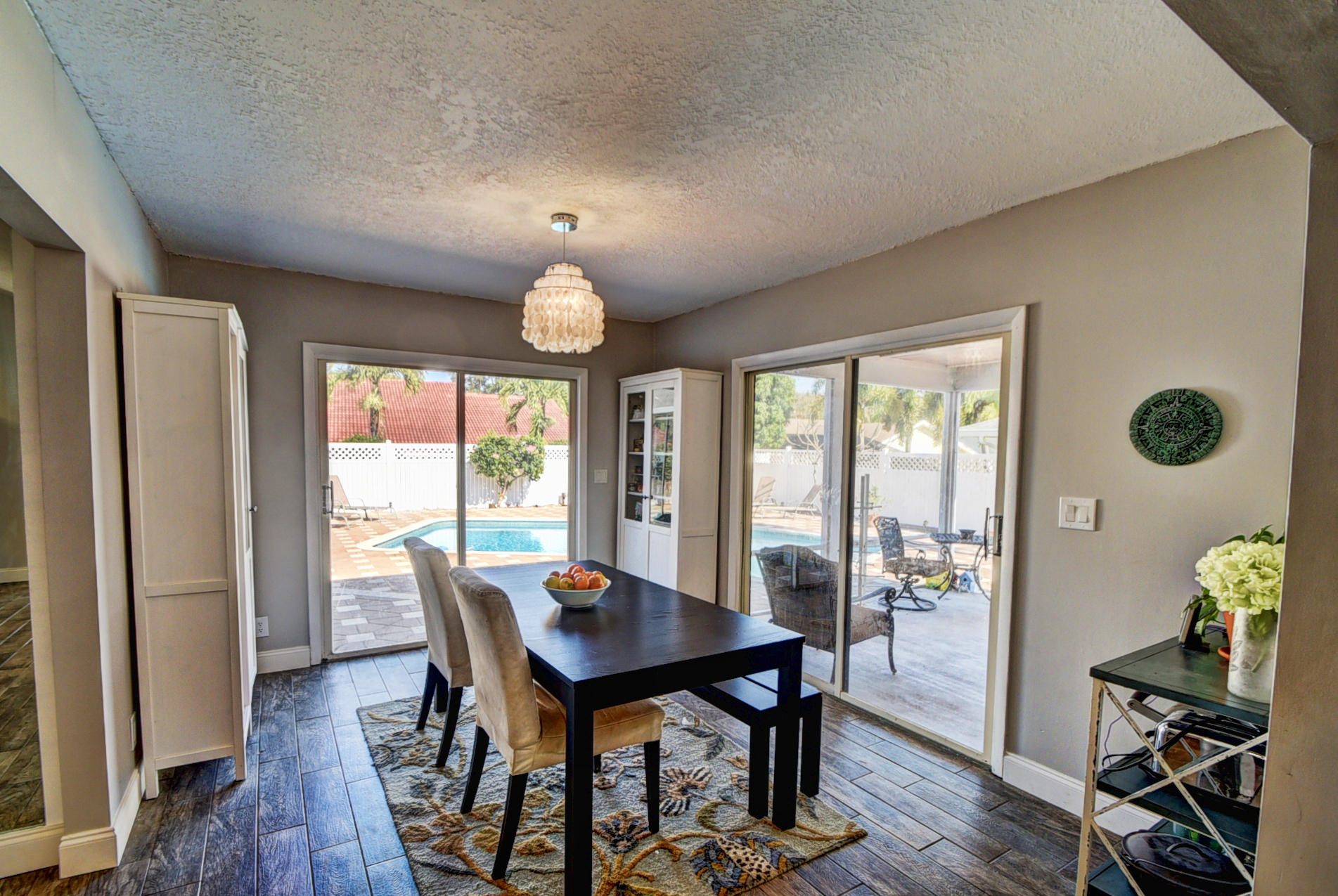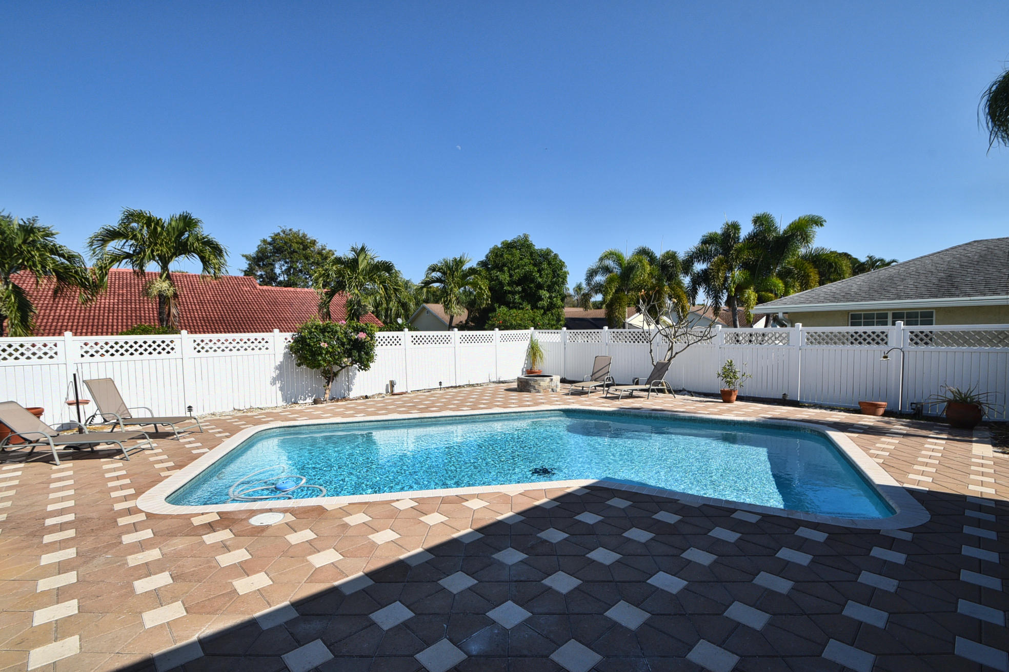 Completely renovated 4 bedroom, 2 bath, 2 car garage home located in desirable east Boca Raton. When you walk into the living area you will notice the volume ceilings, newly replaced skylights, fireplace, reading nook, wet bar, and the beautiful tile throughout the home. The spacious double door master bedroom has a wall-to-wall closet and bathroom with separate, dual sinks; a private shower & cabana door leading to the backyard pool area. The kitchen has a snack bar for casual dining, is open to both the huge family room and dining room. The formal dining area has 2 sets of sliders & overlooks the newly redone back patio with pool that was recently refinished with Diamond Bright.