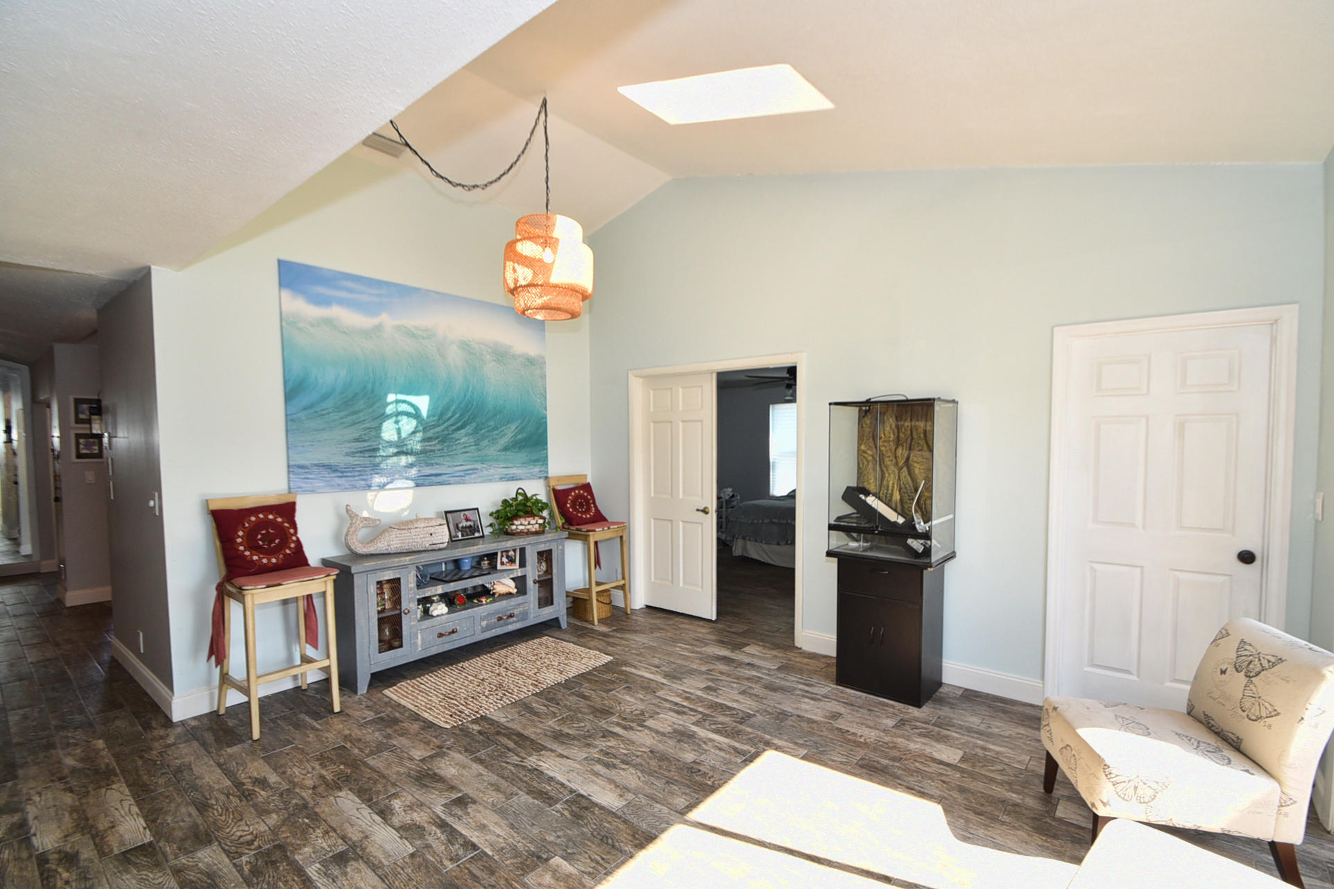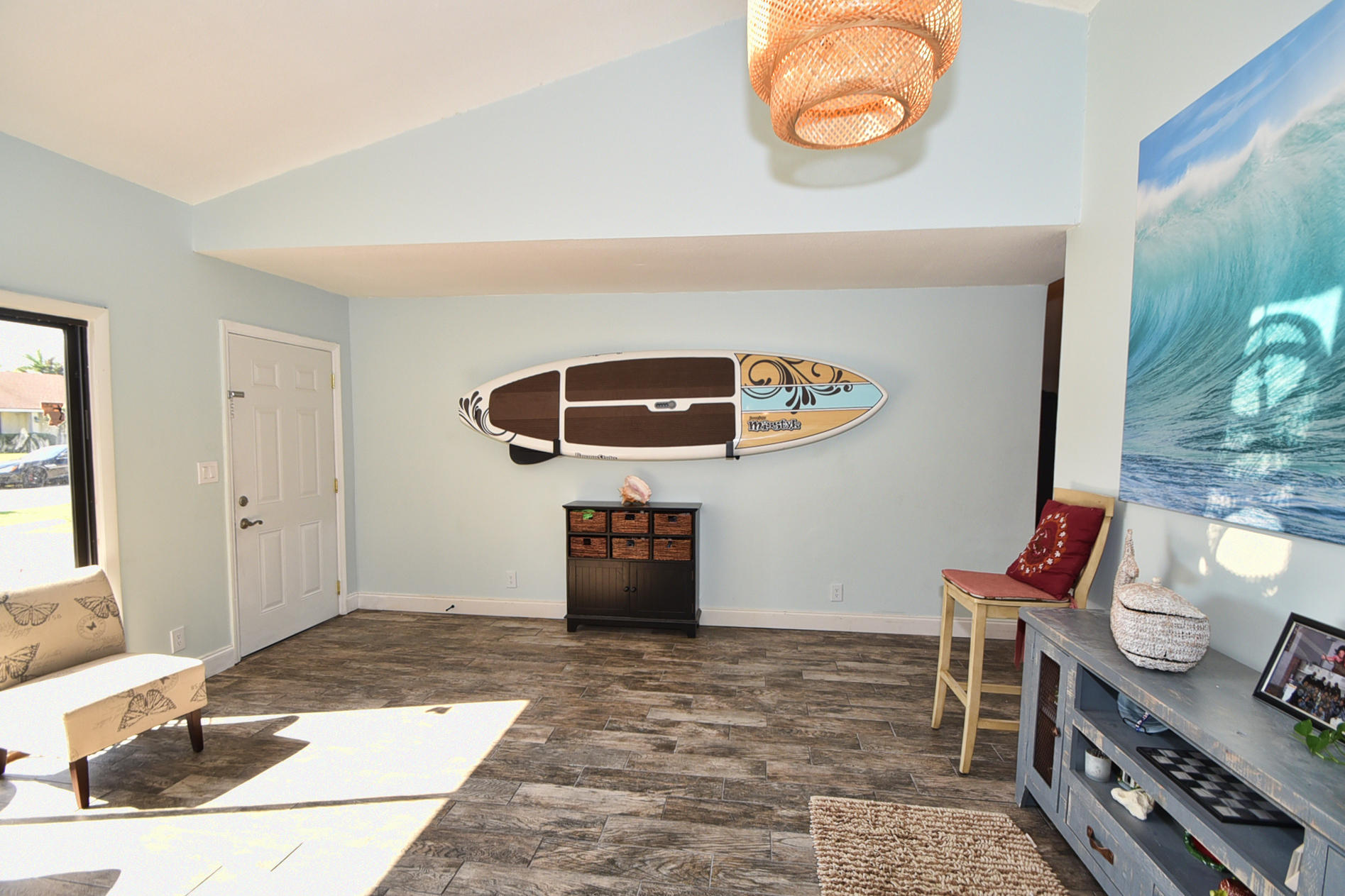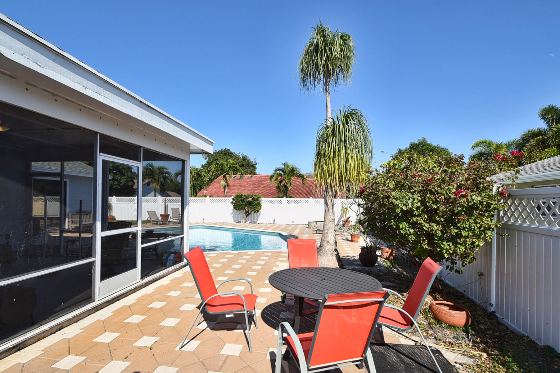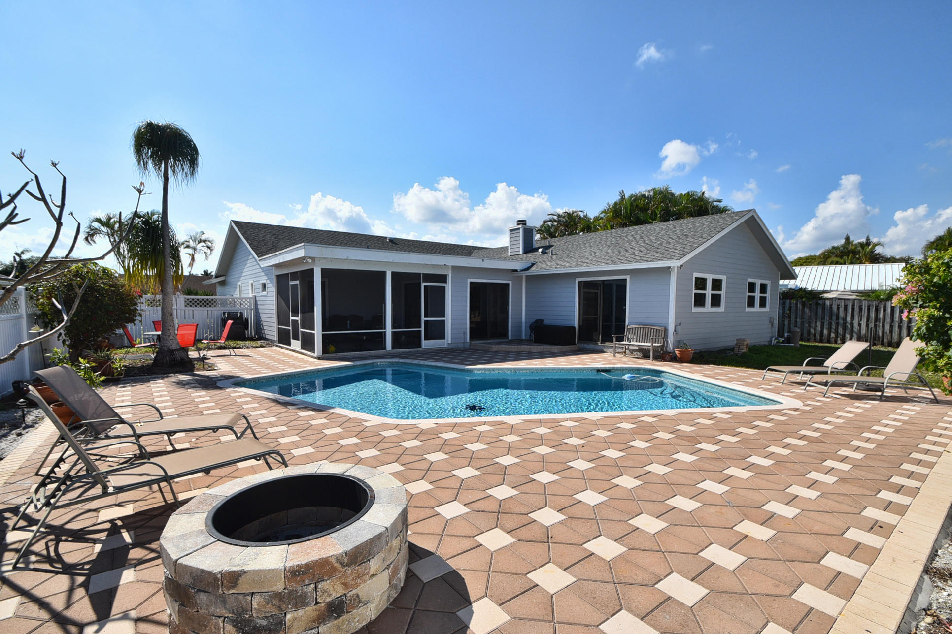 Completely renovated 4 bedroom, 2 bath, 2 car garage home located in desirable east Boca Raton. When you walk into the living area you will notice the volume ceilings, newly replaced skylights, fireplace, reading nook, wet bar, and the beautiful tile throughout the home. The spacious double door master bedroom has a wall-to-wall closet and bathroom with separate, dual sinks; a private shower & cabana door leading to the backyard pool area. The kitchen has a snack bar for casual dining, is open to both the huge family room and dining room. The formal dining area has 2 sets of sliders & overlooks the newly redone back patio with pool that was recently refinished with Diamond Bright.