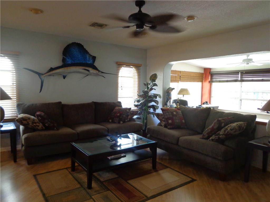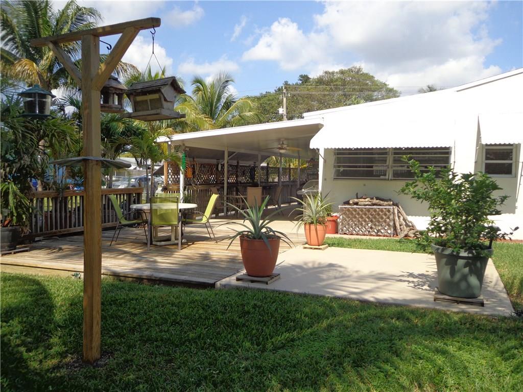 Charming 3 bdr 1½ bath plus (Laundry rm & 1/2 bath are in 3rd bdrm) Very well kept. Curved doorway to living room & liv rm window-walls- add style and charm. Gorgeous laminate faux wood flooring on a diagonal. Updated kitchen with new appliances. Fenced carport & aluminum roofing. Spacious private side & back yard for entertaining. Beautiful palm trees & bamboo landscaping. On an ocean access canal with a low fixed bridge. Picturesque Park view. Relax, enjoy view, fish, barbeque.