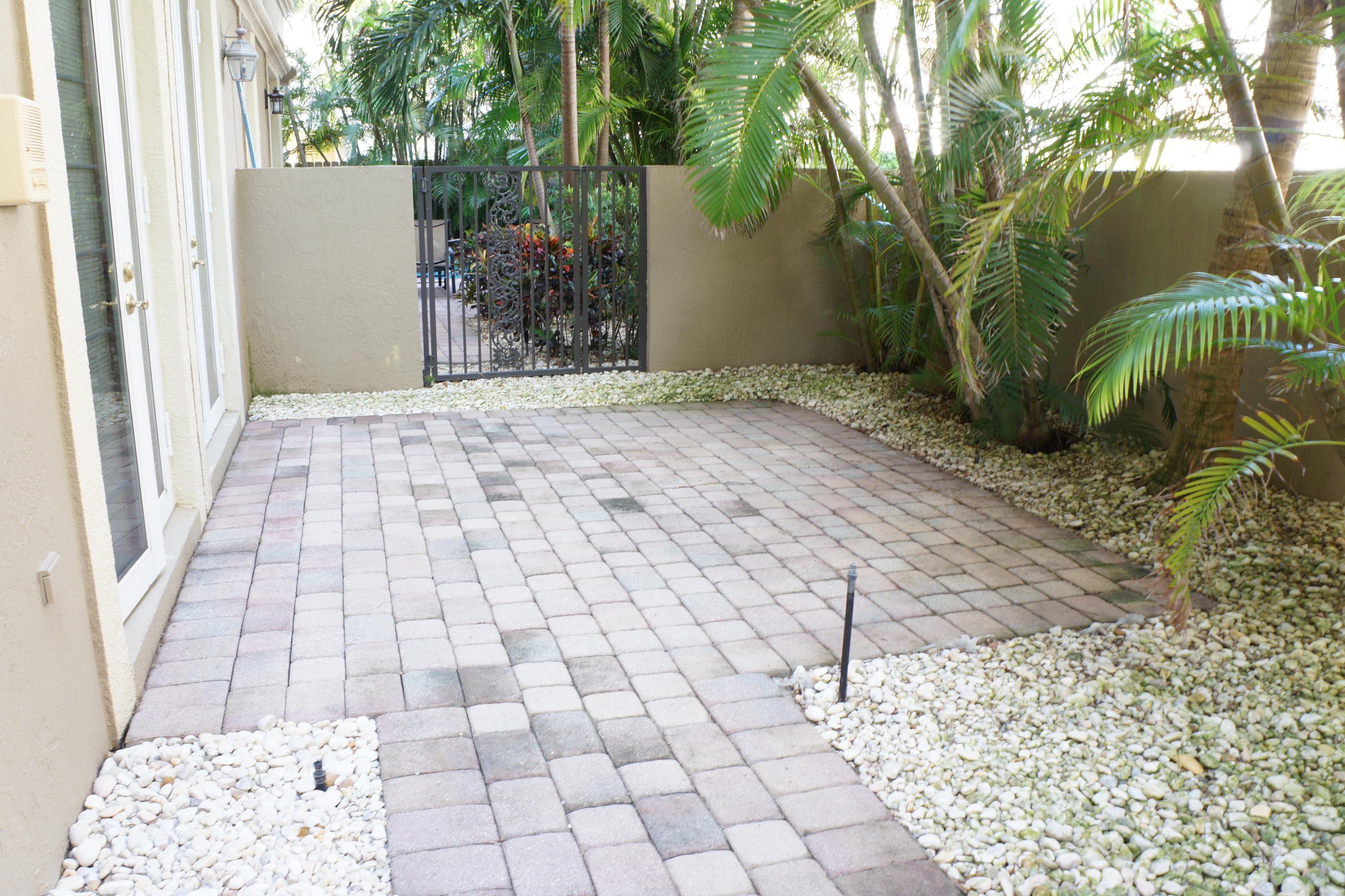 Beach rights as well as 2 dogs or cats any size are allowed in this elegant private enclave. Third complex to the beach, easy walk. Private elevator within the townhome. Volume ceilings throughout, new kitchen appliances. Back yard patio finished with pavers. Whirlpool in the master bath as well as separate shower. French doors, 2 car garage and tile flooring throughout. Central vac. Empty and ready to move in. Easy Show. Has fire sprinklers throughout.