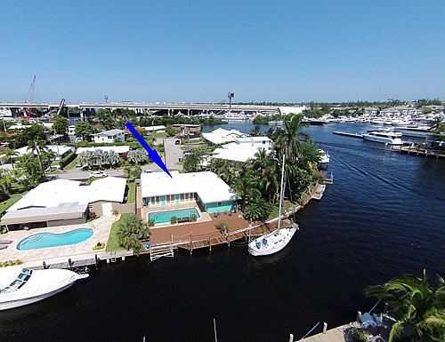 Your dreams of waterfront living come true with this beautiful 3/2 pool home. 107' WF. 1 Lot from Point, at end of cul-de-sac. Tile roof--2011. Open floor plan. Impact resistant French doors to pool and waterfront. Tile floors in living area; parquet in b edrooms. Kitchen renovated--2005. Corian counters. Maple cabinetry. S/S high end appliances. New AC--2010. Presently configured as 2-bedroom; easily reconverted to 3-bedroom. SqFt and WF footage not confirmed.Ocean Access.One 55-foot Fixed I-95 Overpass.