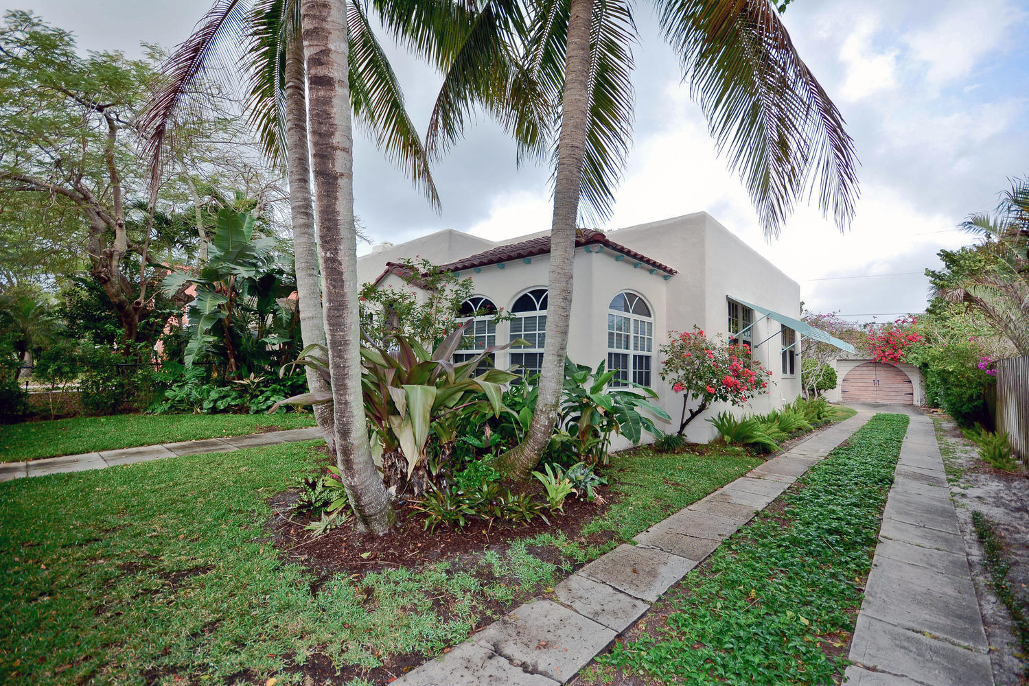 Adorable & Quaint 1927 Spanish Mission House in the well sought Flamingo Park area-W.P.B. Perfectly located mins away from Downtown, City Place, beaches, airport & soon to open Hi-Speed-Miami-Orlando train stop. Top rated School Zoning; Palm Beach Public Elem. Impact Windows/Glass French Doors. Updated Electric & Sec-Sys. Renovated Lg. Kitchen & Full Bath w/Qtz counter tops. Original restored features like doors, window trim, wood floors, fireplace, sconces, antique gas oven & pecky cypress ceilings which all bring back the nostalgia & charm of the early 1900s Florida era. Walk out to the large-lush, and green backyard with a covered deck & built-in gas grill ready to host great BBQ parties. Pergola dining area sits at the end of the garden walkways-and all irrigated by automated system.
