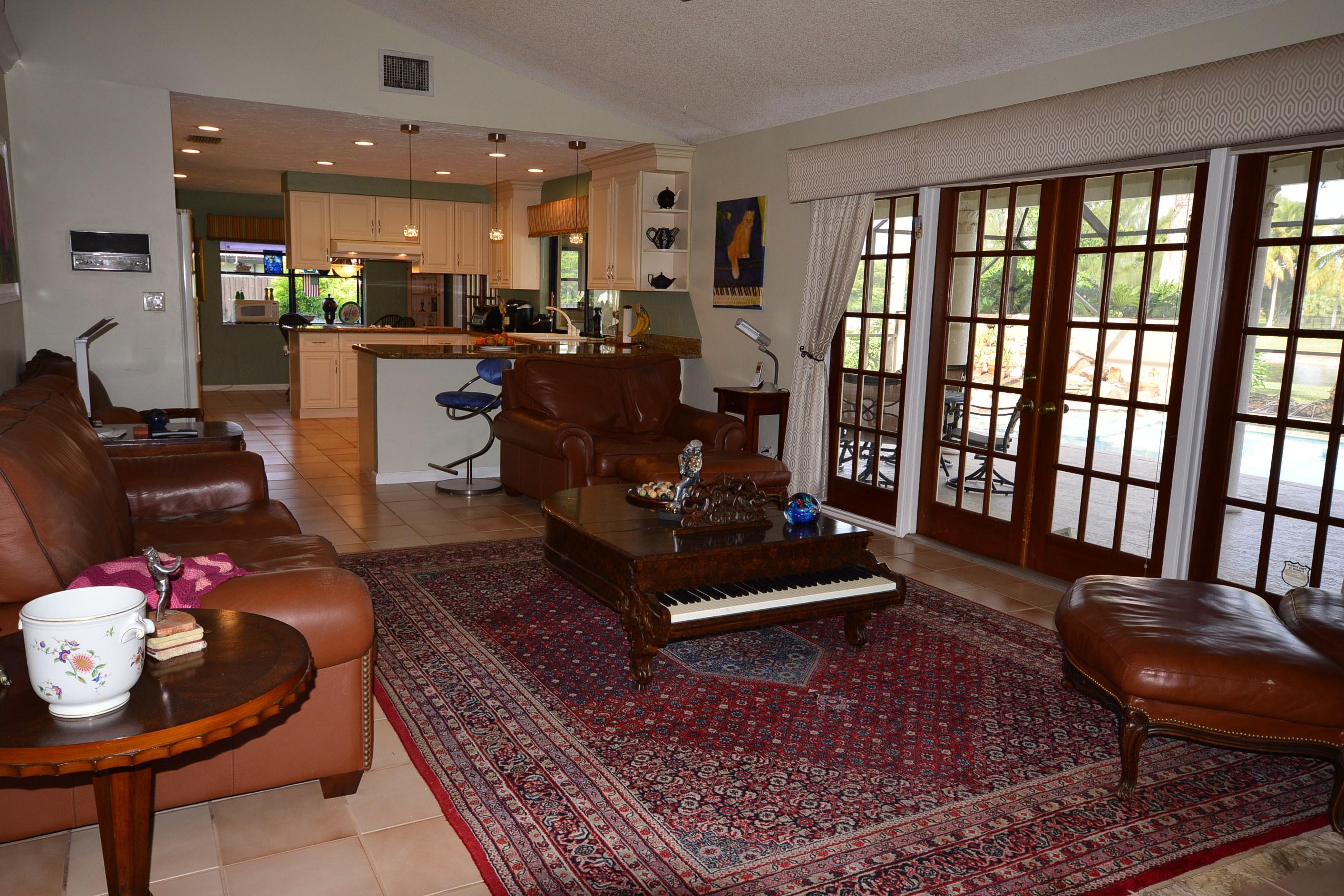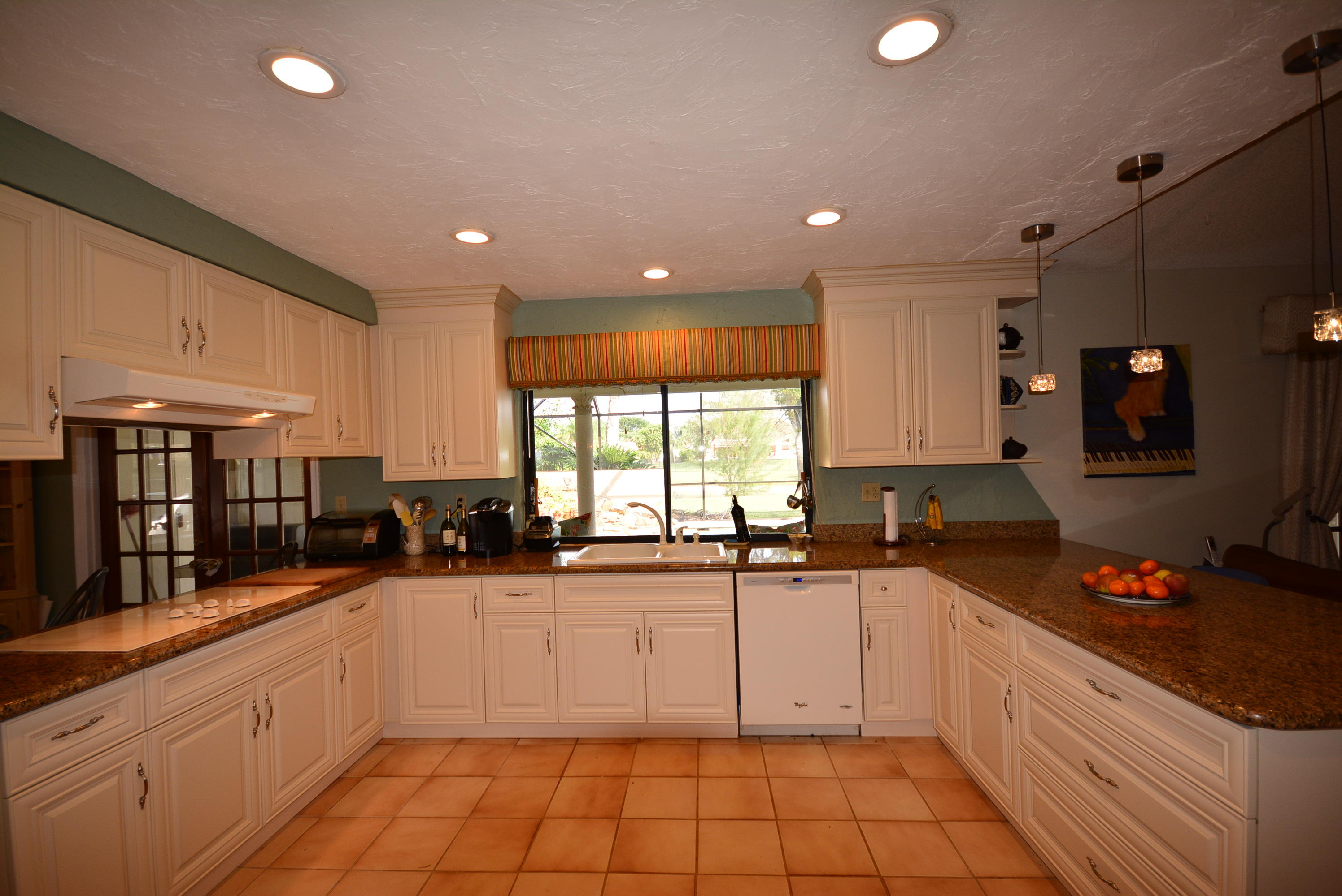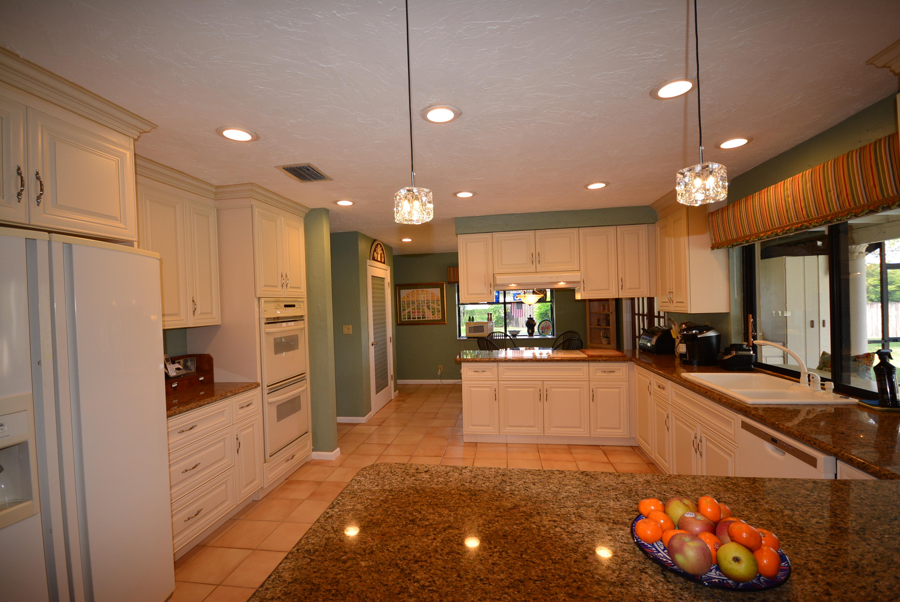 Beautiful home on .60 acre waterfront lot located at end of quiet culdesac. Screened solar heated pool with waterfall & oversized covered patio. Outdoor patio shower w hot&cold water, New pool screening, new pool motor & filter. Canvas Hurricane screen for patio. Renovated kitchen with new cabinets, granite counters, soft close drawers, double oven, new dishwasher, pantry, pass thru window to patio, new light fixtures, many high hats. All bathrooms renovated with new cabinets, sinks, upgraded lights & mirrors. Large bedrms can fit kingsize beds. Master bedroom is tiled & has custom walkin closet. Sunken living room. Dining room has tray ceiling and sliding door to private garden. Roof in 2006. 2 zone AC, 2 water heaters. New lift station for septic tank. New garage door. New washer & dryer
