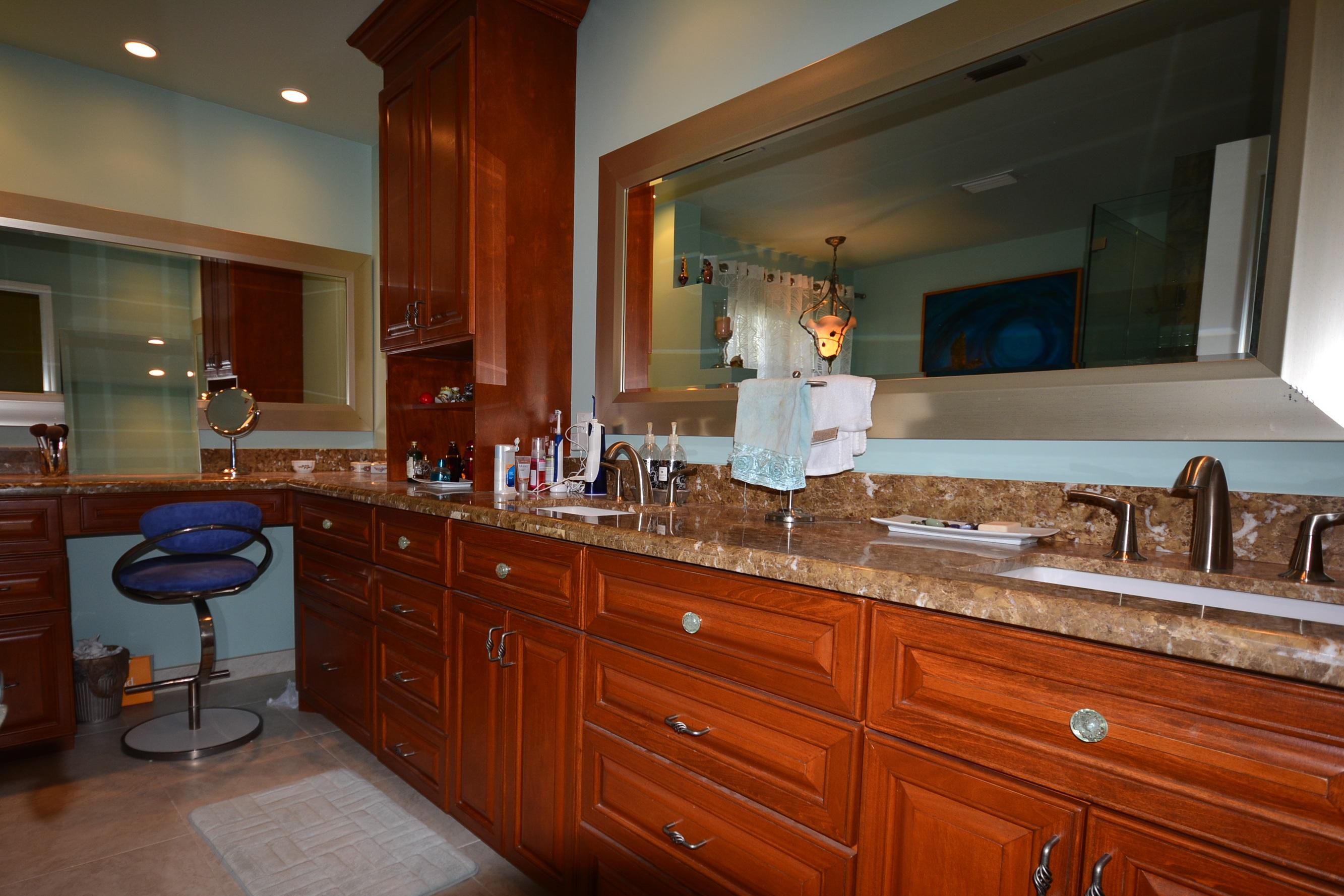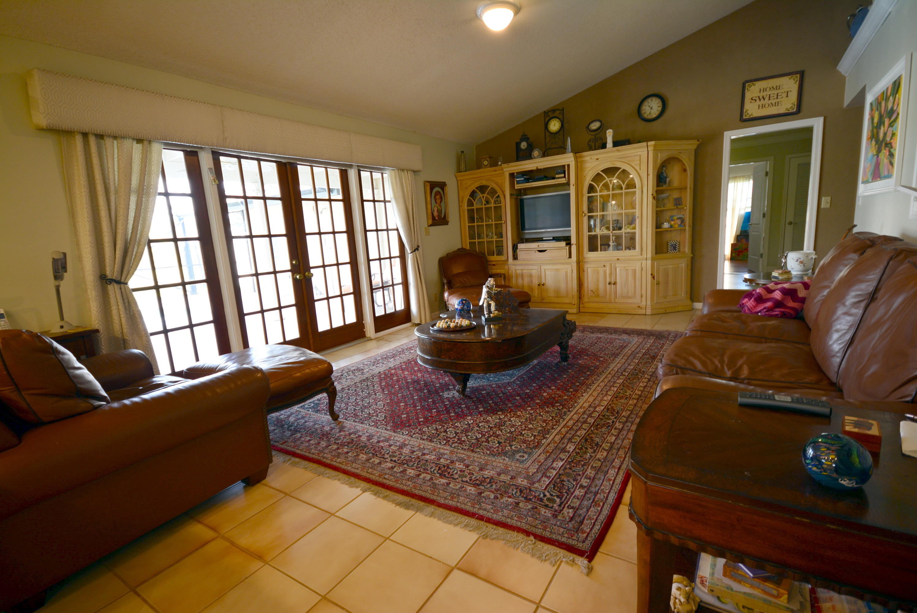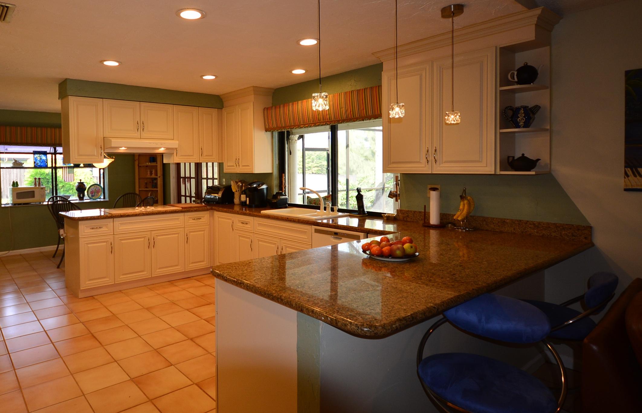 Beautiful home on .60 acre waterfront lot located at end of quiet culdesac. Screened solar heated pool with waterfall & oversized covered patio. Outdoor patio shower w hot&cold water, New pool screening, new pool motor & filter. Canvas Hurricane screen for patio. Renovated kitchen with new cabinets, granite counters, soft close drawers, double oven, new dishwasher, pantry, pass thru window to patio, new light fixtures, many high hats. All bathrooms renovated with new cabinets, sinks, upgraded lights & mirrors. Large bedrms can fit kingsize beds. Master bedroom is tiled & has custom walkin closet. Sunken living room. Dining room has tray ceiling and sliding door to private garden. Roof in 2006. 2 zone AC, 2 water heaters. New lift station for septic tank. New garage door. New washer & dryer