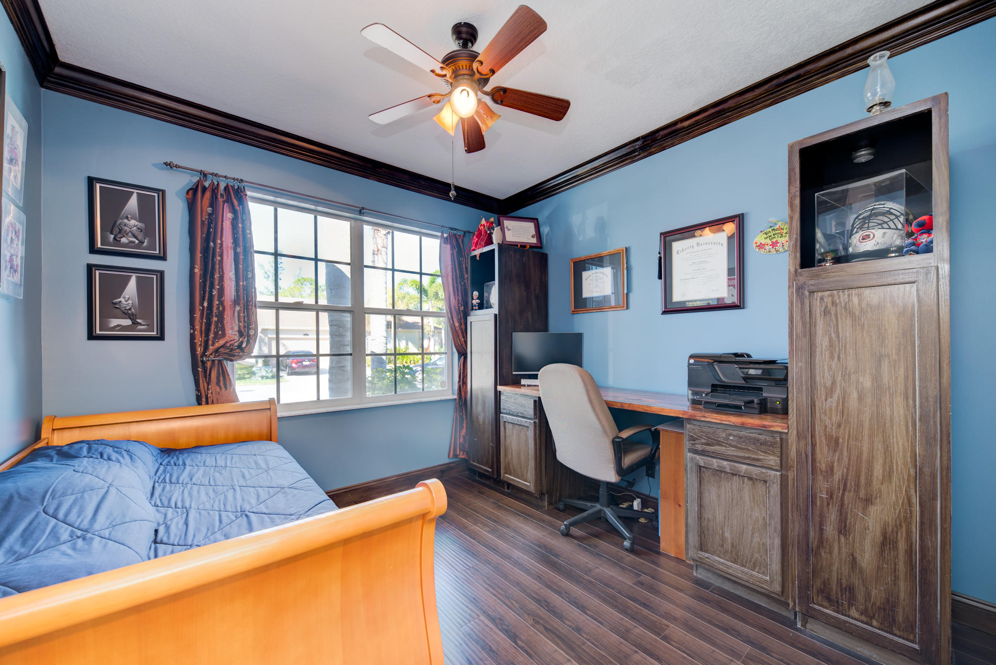 Great home on expansive corner lot in gated community located within an excellent school zone! Step inside through the inviting front porch and enjoy spacious living areas with gorgeous flooring throughout! This home has a lovely, open floor plan which includes a beautiful kitchen with large snack bar, granite counter tops, and gorgeous cabinetry! All of the bedrooms are also spacious and the master suite is complete with a private bathroom and large walk-in closet. Step into the lovely covered and enclosed patio and enjoy a cup of coffee while overlooking your private backyard. This meticulously kept home has it all! Centrally located just minutes from the Turnpike, I-95, Wellington and Palm Beach International Airport!